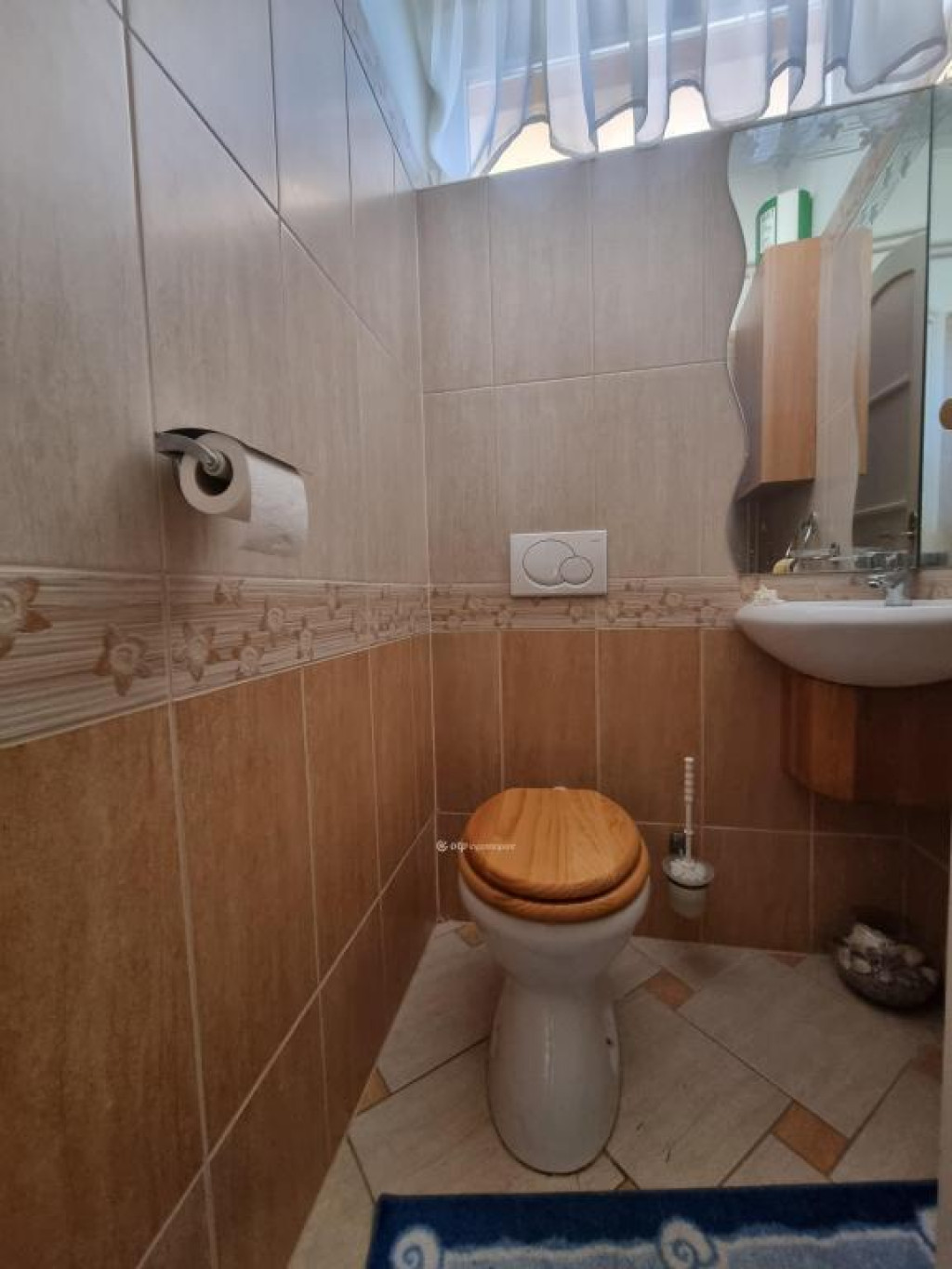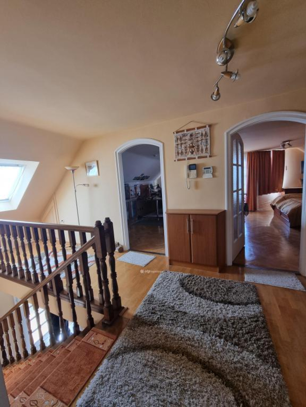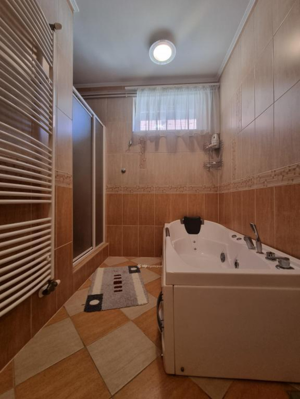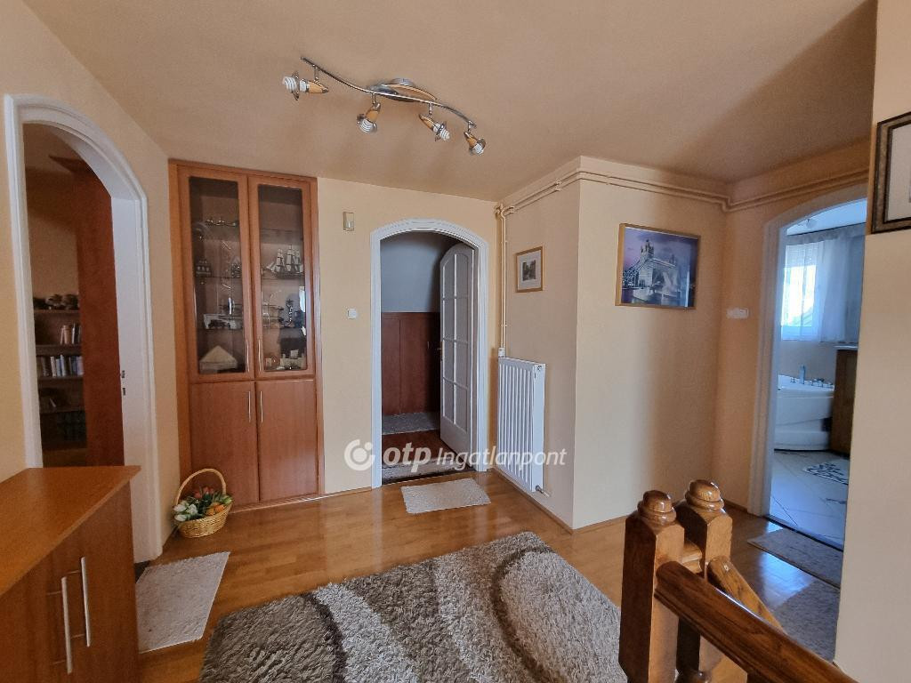 Eladásra kínálok Veszprém vármegyében, Pápa közkedvelt, újépítésű lakónegyedében egy remek elrendezésű, kétszintes, 209 m2-es, befektetési célnak kiváló, több generáció együttlakására is alkalmas, családi házat, dupla, 874 m2-es telken. Az ingatlan adottságaiból kifolyólag kiválóan alkalmas befektetési célra: akár vendégházról, panzióról vagy lakás kiadásról legyen szó. Elrendezés tekintetében áll: 4 teljes értékű lakószobából, egy hangulatos nappaliból és étkezőből, konyhából, előszobából és közlekedőből mindkét szintem, gardróbszobából, kamrából, kazánházból és raktárhelyiségből, két fürdőszobából és illemhelyiségből, szaunahelységből, mosókonyhából valamint egy teraszból. A lenti és az emeleti lakóteret egy gyönyörű, világos lépcsőház köti össze. A ház 4 szobája és a nappali fa parkettás, a többi helyiség kerámia burkolatú. Mindkét fürdőszoba kényelmes, nagyméretű, mindkettőben jacuzzi és zuhanyzó került beépítésre. Gáz cirkó kazán szolgáltatja a melegvíz ellátását és a fűtését, padlófűtéses és radiátoros hőleadással, erre a nappali díszeként is pompázó és a téli estéket hangulatossá varázsló kiválóan működő kandalló is rásegít valamint hűtő-fűtő klima. Az ingatlan mérete ellenére alacsony rezsi számlával rendelkezik. A ház kiváló statikai és szerkezeti állapotú, hatalmas nyílászárói vannak, világos tereket biztositva. Udvara rendezett, körbekerített elektromos kapúval, részben füvesített, részben térkövezett, ahol dupla garázs és egy fatároló is megtalálható. A parkosított udvar kellemes pihenési lehetőséget nyújt a nyári napokra az ide költöző családtagjainak. Az ingatlan utcafronti részén, térkövezett parkolási lehetőség van. Az ingatlan kiváló elhelyezkedéssel rendelkezik, ahonnét könnyen elérhetőek a közintézmények, élelmiszerboltok, drogériák, gyógyszertár, buszpályaudvar, sétálóutca és minden létfontosságú üzlet. Az otthonosan kialakított családiházat ajánlom mindazon vevők részére, akik egy szép, családias, nyugodt kertvárosi részen kívánnak élni, távol a város zajától. Az ingatlan paramétereit tekintve tökéletes egy családi háznak vagy akár üzleti szempontból is jó befektetés lehet. Az otthonosan kialakított családiházat ajánlom mindazon vevők részére, akik egy szép, igényes ingatlant szeretnének. Az OTP Ingatlanpont teljes körű ügyintézéssel áll az eladók és a vevők rendelkezésére. A kínálatunkból választott ingatlan finanszírozásához kedvezményes hitelkonstrukciót kínálunk. Otthon Start Hitelprogram. Az adásvételi szerződés megkötéséhez igény szerint megbízható ügyvédi közreműködést biztosítunk, és segítséget nyújtunk az adásvételhez kapcsolódó ügyek intézéséhez is. Az ingatlanról készült alaprajz, illetve fényképfelvételek az Otp ingatlanpont szellemi tulajdonát képezik. Amennyiben felkeltette érdeklődését az általam kínált ingatlan, keressen bizalommal. Ne habozzon tovább, hiszen ez a ház valóban páratlan lehetőséget kínál! SZEREZZE MEG EZT A MODERN ÉS STÍLUSOS OTTHONT, HÍVJA MOST A MEGADOTT TELEFONSZÁMOT, ÉS LÉPJEN KÖZELEBB ÁLMAI OTTHONÁHOZ!