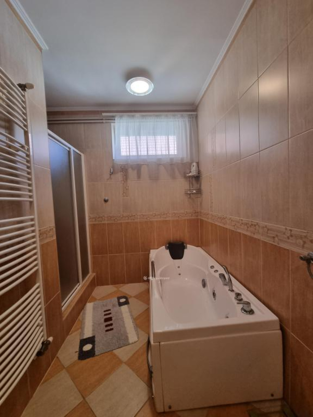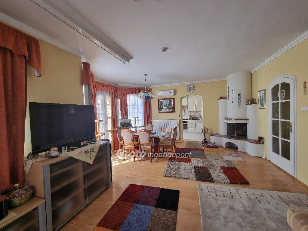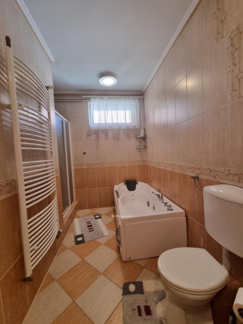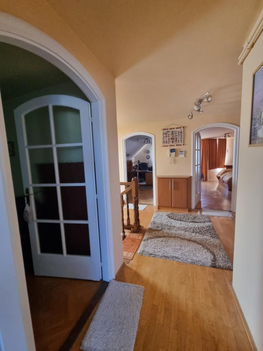 Eladásra kínálok Veszprém vármegyében, Pápa közkedvelt, újépítésű lakónegyedében egy remek elrendezésű, kétszintes, 209 m2-es, befektetési célnak kiváló, több generáció együttlakására is alkalmas, családi házat, dupla, 874 m2-es telken. Az ingatlan adottságaiból kifolyólag kiválóan alkalmas befektetési célra: akár vendégházról, panzióról vagy lakás kiadásról legyen szó. Elrendezés tekintetében áll: 4 teljes értékű lakószobából, egy hangulatos nappaliból és étkezőből, konyhából, előszobából és közlekedőből mindkét szintem, gardróbszobából, kamrából, kazánházból és raktárhelyiségből, két fürdőszobából és illemhelyiségből, szaunahelységből, mosókonyhából valamint egy teraszból. A lenti és az emeleti lakóteret egy gyönyörű, világos lépcsőház köti össze. A ház 4 szobája és a nappali fa parkettás, a többi helyiség kerámia burkolatú. Mindkét fürdőszoba kényelmes, nagyméretű, mindkettőben jacuzzi és zuhanyzó került beépítésre. Gáz cirkó kazán szolgáltatja a melegvíz ellátását és a fűtését, padlófűtéses és radiátoros hőleadással, erre a nappali díszeként is pompázó és a téli estéket hangulatossá varázsló kiválóan működő kandalló is rásegít valamint hűtő-fűtő klima. Az ingatlan mérete ellenére alacsony rezsi számlával rendelkezik. A ház kiváló statikai és szerkezeti állapotú, hatalmas nyílászárói vannak, világos tereket biztositva. Udvara rendezett, körbekerített elektromos kapúval, részben füvesített, részben térkövezett, ahol dupla garázs és egy fatároló is megtalálható. A parkosított udvar kellemes pihenési lehetőséget nyújt a nyári napokra az ide költöző családtagjainak. Az ingatlan utcafronti részén, térkövezett parkolási lehetőség van. Az ingatlan kiváló elhelyezkedéssel rendelkezik, ahonnét könnyen elérhetőek a közintézmények, élelmiszerboltok, drogériák, gyógyszertár, buszpályaudvar, sétálóutca és minden létfontosságú üzlet. Az otthonosan kialakított családiházat ajánlom mindazon vevők részére, akik egy szép, családias, nyugodt kertvárosi részen kívánnak élni, távol a város zajától. Az ingatlan paramétereit tekintve tökéletes egy családi háznak vagy akár üzleti szempontból is jó befektetés lehet. Az otthonosan kialakított családiházat ajánlom mindazon vevők részére, akik egy szép, igényes ingatlant szeretnének. Az OTP Ingatlanpont teljes körű ügyintézéssel áll az eladók és a vevők rendelkezésére. A kínálatunkból választott ingatlan finanszírozásához kedvezményes hitelkonstrukciót kínálunk. Otthon Start Hitelprogram. Az adásvételi szerződés megkötéséhez igény szerint megbízható ügyvédi közreműködést biztosítunk, és segítséget nyújtunk az adásvételhez kapcsolódó ügyek intézéséhez is. Az ingatlanról készült alaprajz, illetve fényképfelvételek az Otp ingatlanpont szellemi tulajdonát képezik. Amennyiben felkeltette érdeklődését az általam kínált ingatlan, keressen bizalommal. Ne habozzon tovább, hiszen ez a ház valóban páratlan lehetőséget kínál! SZEREZZE MEG EZT A MODERN ÉS STÍLUSOS OTTHONT, HÍVJA MOST A MEGADOTT TELEFONSZÁMOT, ÉS LÉPJEN KÖZELEBB ÁLMAI OTTHONÁHOZ!