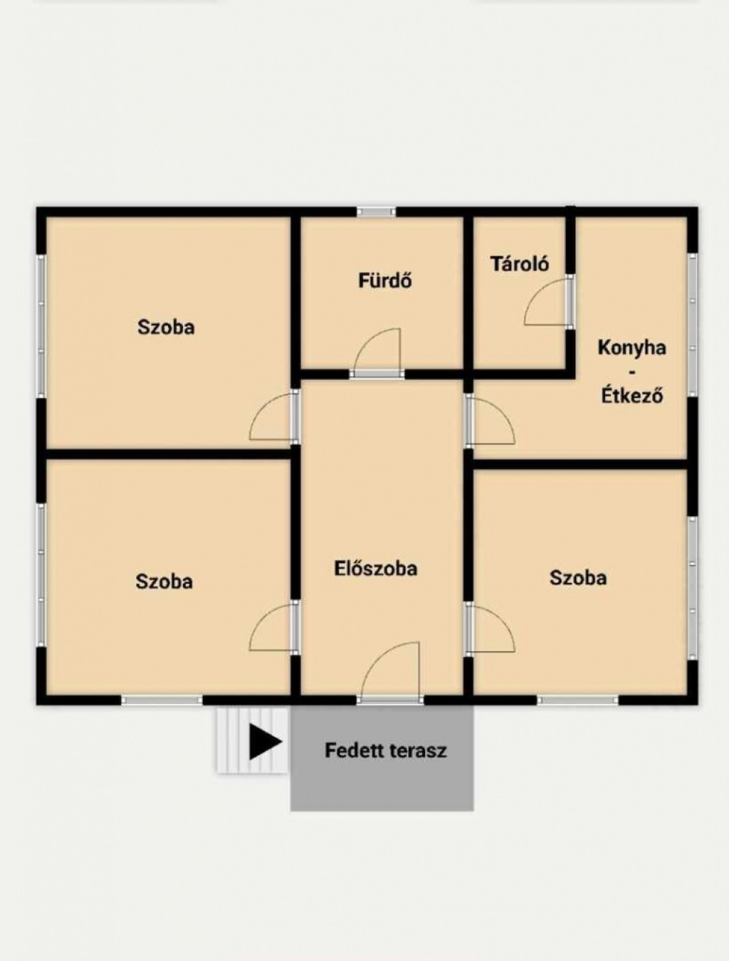 - 78 nm-es, földszint + szuterén, előszoba, 3 szoba, konyha, fürdőszoba
