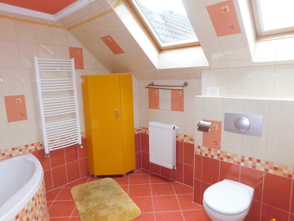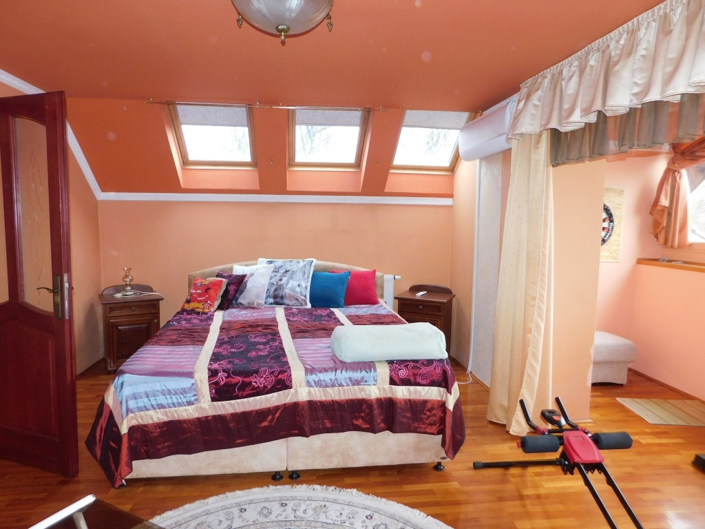 - 3 szinten, összesen 9 szoba (2 nappali + 7 szoba), 2 konyha, 4 db fürdőszoba (2 db fürdőkádas, 2 db zuhanyzós)