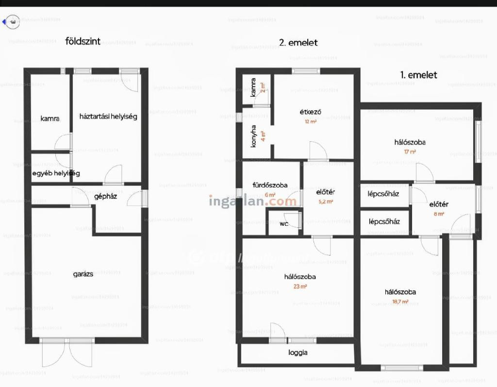 2. emelet: kamra, konyha,étkező,fürdőszoba,előtér,szoba,loggia