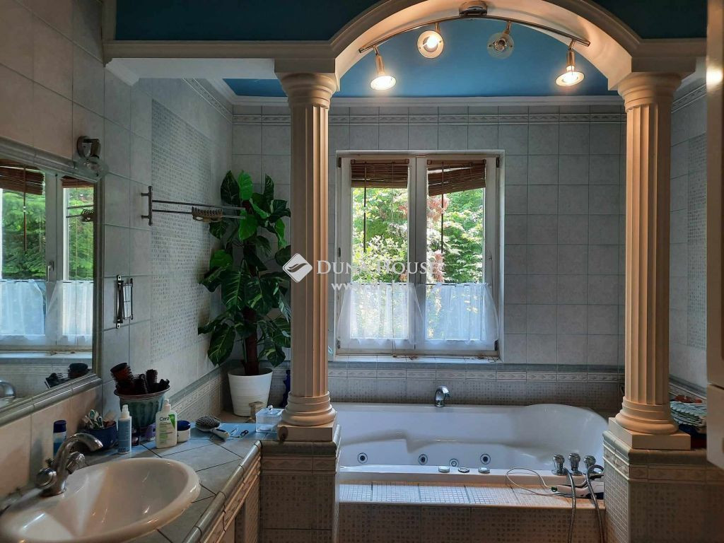 Páton kétgenerációs családi ház eladó!Páty legszebb részén, a Dobogón, csendes kis utcában, de mégis közel a központhoz, kínálok megvételre egy kivételes adottságokkal rendelkező, 198 m2-es, kétszintes, nappali +4 szobás, családi házat, óriási garázzsal, 800 m2-es telekkel. A ház kétgenerációs, része egy 40 m2-es különbejáratú lakrész, ami egy amerikai konyhás nappali és egy fürdő részből áll. Mivel két lakásos, több generációs háznak van nyílvánítva, így kedvezményes energia felhasználásban részesül, ami igen kedvező a mai energia árak idején.Az enyhén lejtő telek adottságait kihasználva a házba, ahogy belépünk, a fogadó szinten található a szülői háló és fürdő. Innen széles lépcsősor indul lefelé a nappali-ebédlő-konyha-dolgozó szoba együttesébe és felfelé az emeleti szobákhoz és a fenti fürdőbe.Az egylégterű, nappali-étkező-konyhából közvetlenül a kertbe léphetünk a teraszon át, innen élvezhetjük a telek már körbeépített jellegéből adódó intimitását. A nappaliból nyíló dolgozó szoba sajátossága, hogy a mennyezeten meghagyták a tetősíkot – ezáltal a belmagasság a szokásosnál jóval magasabb, melyet gyönyörű fa gerendákkal díszítettek és egy hatalmas ablak teszi egyedívé. Az alsó szinten 2 gépkocsi befogadására is alkalmas 20 m2-es garázs. A garázs másik oldalán található a különálló 40m2-es lakrész, ami alkalmas akár a költöző nagyszülőnek, akár irodának vagy egyéb más célra is.A ház 2001-ben épült, a fűtés gázzal és alternatív megoldásként pellettel fűthető kazánnal is biztosított, radiátorok mellett. Páty a budai agglomeráció egyik legkeresettebb települése, mely gyönyörű fekvésével, remek kirándulóhelyeivel, jó infrastruktúrájával a gyerekes családok kedvencévé vált az elmúlt években, nem messze a fővárostól. A közeljövőben átadásra kerül a már építés alatt lévő autópálya lehajtó, ami meggyorsítja a közlekedést.