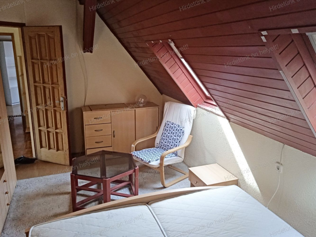 Az alsó szinten hatalmas amerikai konyhás nappali 3 ablakkal (kilátással a kertre, földig érő boltíves ablakkal), 2 nagy szoba 200-as ablakokkal, a felső szinten 2 szoba és 1 fél szoba, fürdő és egy hatalmas, világos, napsütéses közös tér kapott helyet.