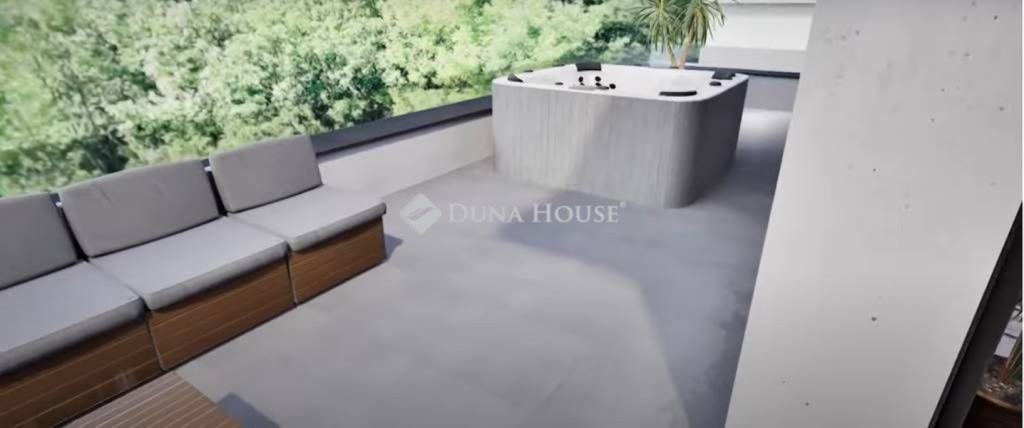 A ház egyediségét a domborzati viszonyok előnyeinek teljes-körű kiaknázása adja. A dombtetőn álló ház legfelső emeletének hatalmas teraszáról és amerikai konyhás nappalijából panoráma nyílik Budapest környékének domborzatára. Ezen a szinten mosdó és wc is rendelkezésre áll.