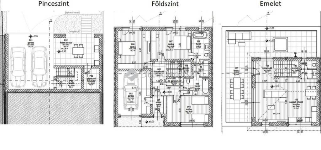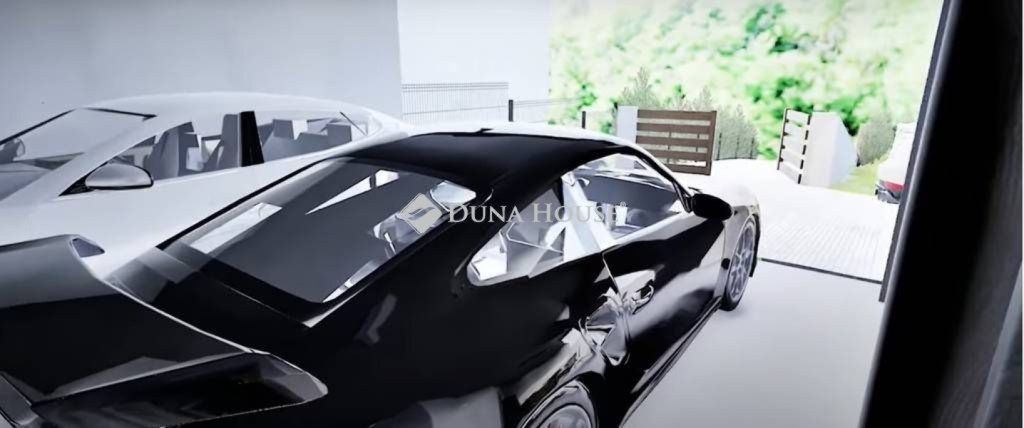 A ház legalsó szintjén 2 autónak garázs, tágas fedett terasz, tároló, valamint gépészeti helyiség áll rendelkezésre. A fedett terasz kiváló lehetőséget nyújt egy második konyha kialakítására. A lehetőségeknek csak a fantázia szab határt: az itteni dupla garázs akár egy medencének és szaunának is helyet adhat (ebben az esetben egy garázs és 3-4 autóbeálló áll rendelkezésre).
