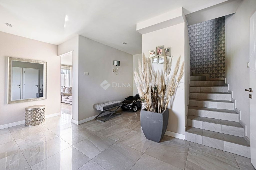Pécelen, a Kelő lakóparkban új építésű, 2 szintes, tégla falazatú, 430 nm lakóterű, 2 LAKÁSOS IKERHÁZ, egyben megvásárolható, számtalan lehetőséget biztosítva a jövendőbeli tulajdonosnak. Kiváló adottságokkal rendelkező ingatlan, igényes kivitelezéssel, minőségi alapanyagokból, átgondolt tervezéssel, egyedi belső kialakítással készült, ahol a fő szempont a kényelem és alacsony rezsiköltség mellett az exkluzív megjelenés volt.