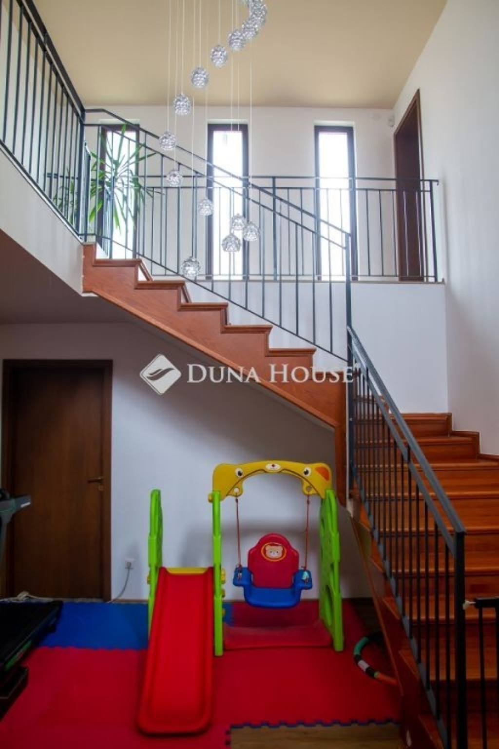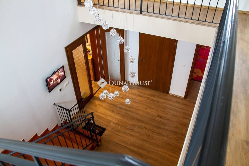 A ház elosztása: lent előszoba, garázs, mosókonyha(wc-vel),fördőszoba-wc,2 szoba, közlekedő, nappali-étkező-konyha, kamra, terasz, a fenti részen 4 szoba, gardrób, fürdőszoba, külön wc,terasz.
