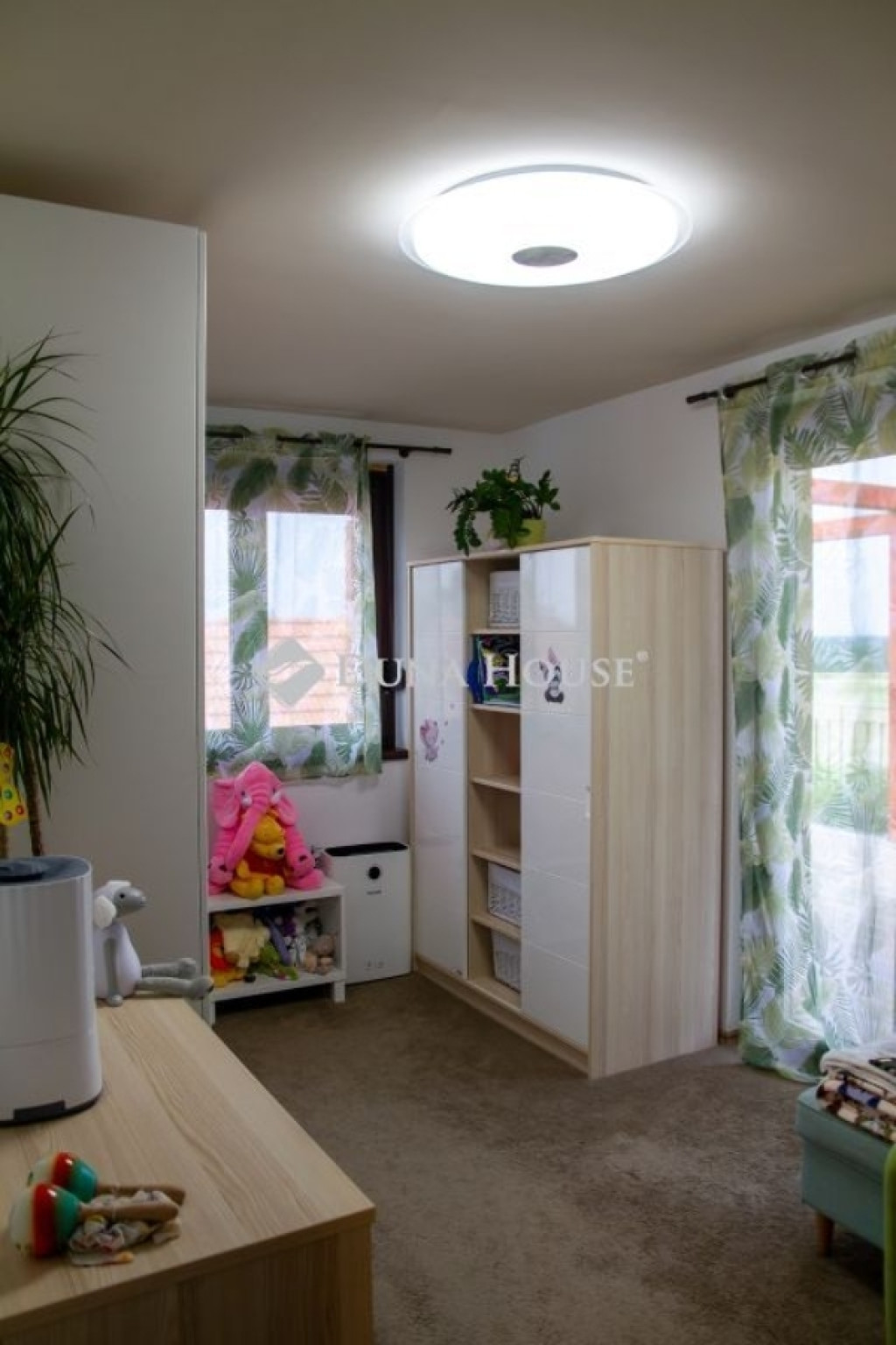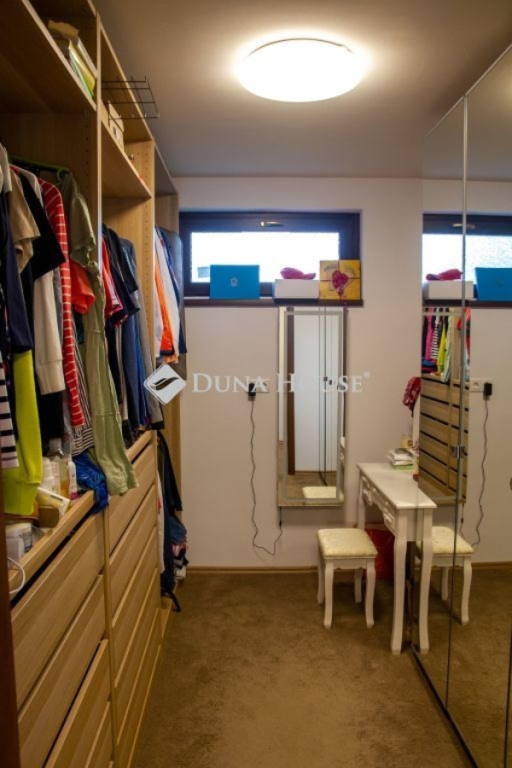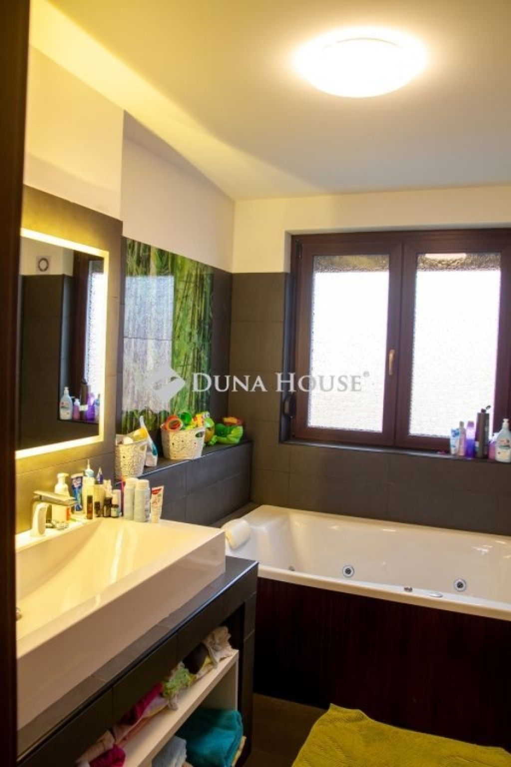 A biztonságot riasztó és kamera rendszer, támogatja. A házban modern DAIKIN mennyezet hűtés-fűtés biztosítja télen a meleget, nyáron a hideget. Miért jó ez a rendszer? A mennyezetben és a padlóban 2km hosszú csőben vizet keringet a rendszer amit a nagy hő leadó felület miatt nem kell nagyon magas hőfokra fűteni/hűteni. Így a rendszer gazdaságosabban tudja melegen/hidegen tartani az egész házat, minden szobában külön termosztáttal vezérelhető, hol/milyen hőfokra hűtsön/fűtsön. A fűtésnél azért jó, mert kellemes kiegyenlített meleget tud csinálni a padló és a mennyezeten keresztül, nyáron pedig olyan pincehideg tehát nem az arcunkba fúj a rendszer, hanem a mennyezetből(úgy van beállítva, hogy a padlót nem hűt) jön a hideg, így kellemes. A ház teljesen elektromos árammal működik, amelyet a tetőn elhelyezett 46 db napelem szinte teljesen költség mentessé tesz. Mindegyik ablak felső kategóriás 3 rétegű üvegezéssel, kívül belül anyagában is mahagóni barna színt kapott. Az árnyékolásról alumínium redőnyök gondoskodnak, amelyeknek egy része elektromosan működő, időzíthető, távirányítóval vezérelhető. Padlástérben különleges pezocell szigetelés van, amely 30 cm vastagságban védi a házat. A szigetelés felett 50 nm fából kialakított pakolható padlástér található.