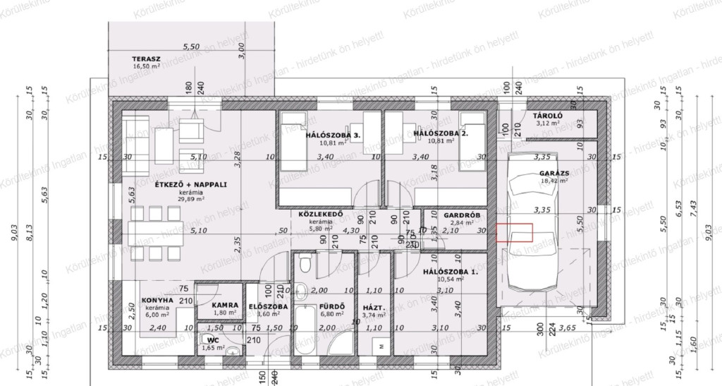 - Fűtött 21,5 m2-es garázs és tároló, a garázs előtt a telken belül egy autónak parkolási lehetőség,
