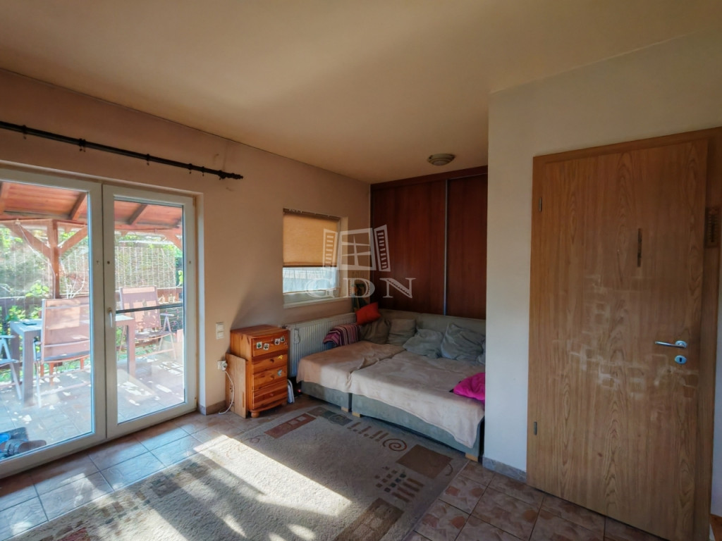 Emellett egy 8 m²-es fedett terasz is rendelkezésre áll, ahonnan a kertre nyíló kilátás élvezhető.