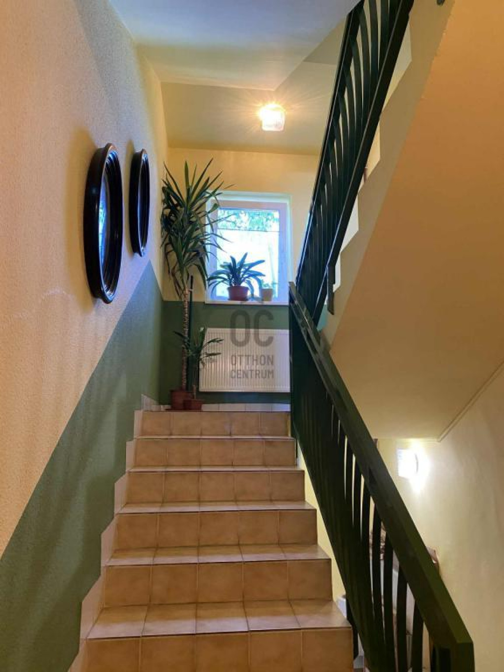 A ház emeleti lakásai különbejáratúak, erkéllyel illetve terasszal ellátottak, melyek a gondozott zöld udvarra néznek. Két gépkocsi beállására alkalmas garázs található az udvarban.