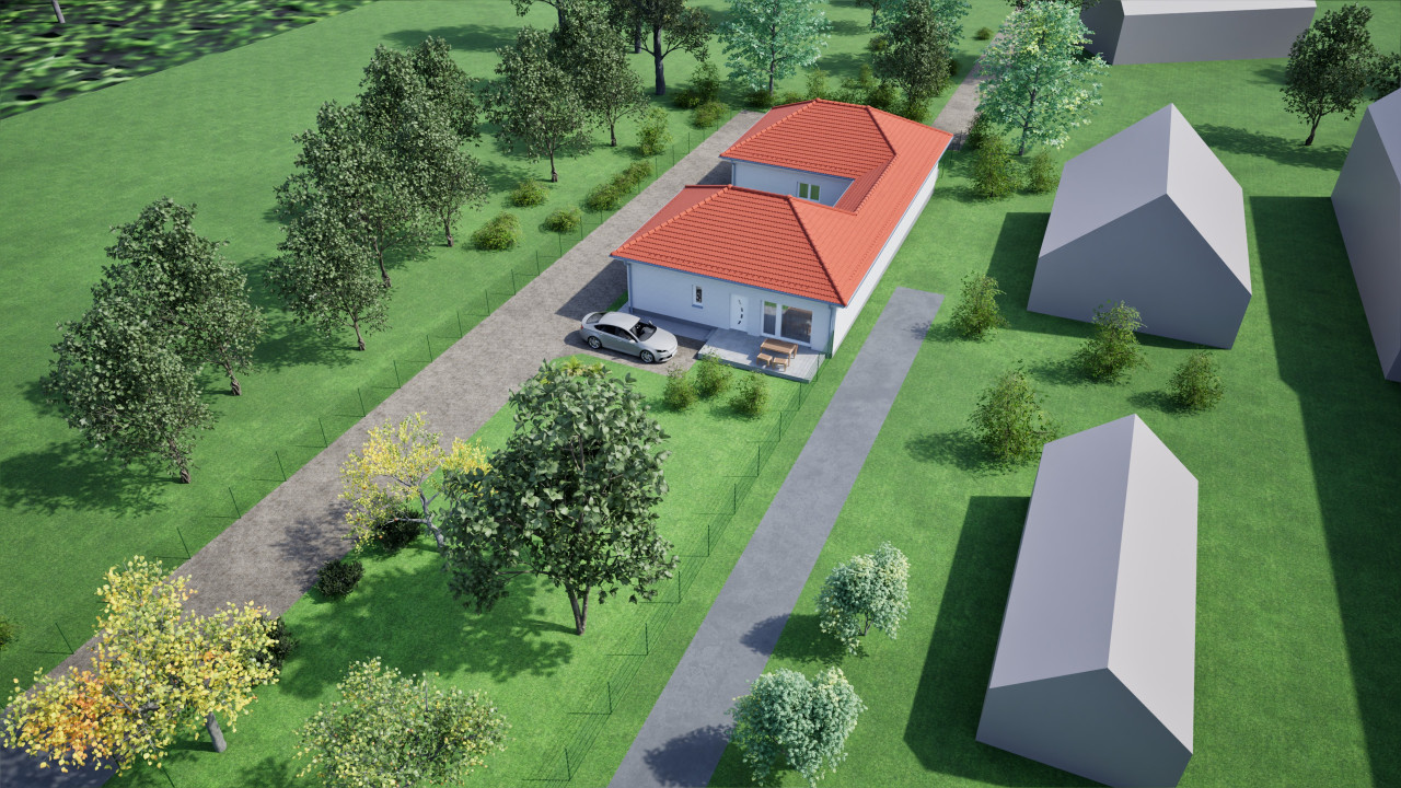 A ház egy 550 nm-es területen helyezkedik el, 72 nm-én amerikai konyhás nappali, 3 hálószoba, külön wc és fürdőszoba, tároló van kialakítva.