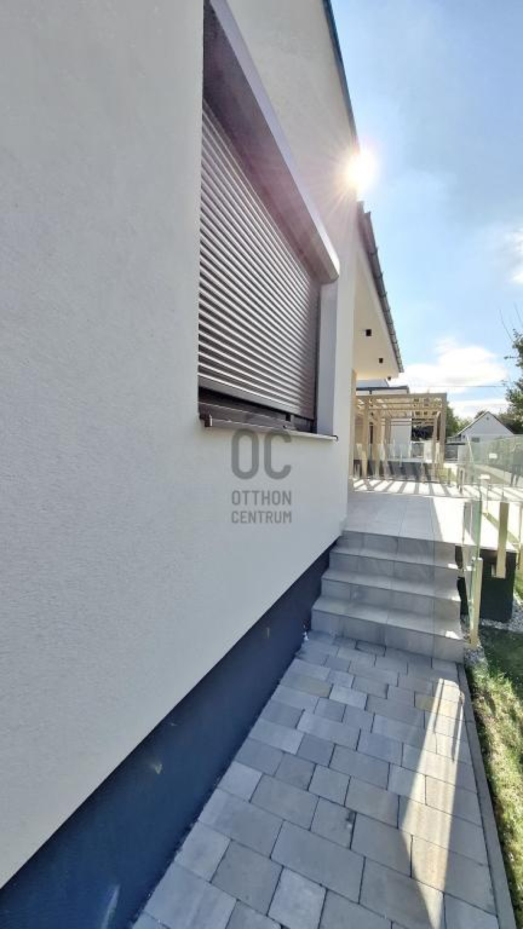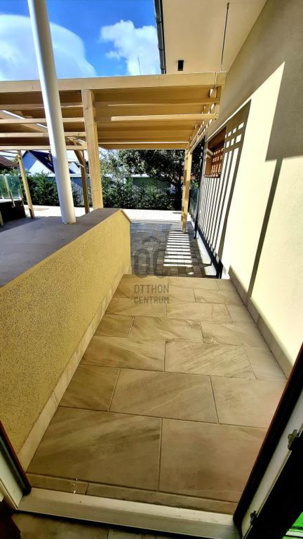 - a 6,2 * 2,1 m-es, részben fedett, járólapozott, dizájn üvegkorláttal szegélyezett terasz, biztosítja a pihenést, a kávézást, de akár a szabadban történő étkezés lehetőségét is