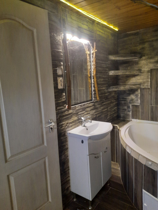 A fűtést hangulatos, vízteres kandalló biztosítja, de klíma beszerelése is megoldható.