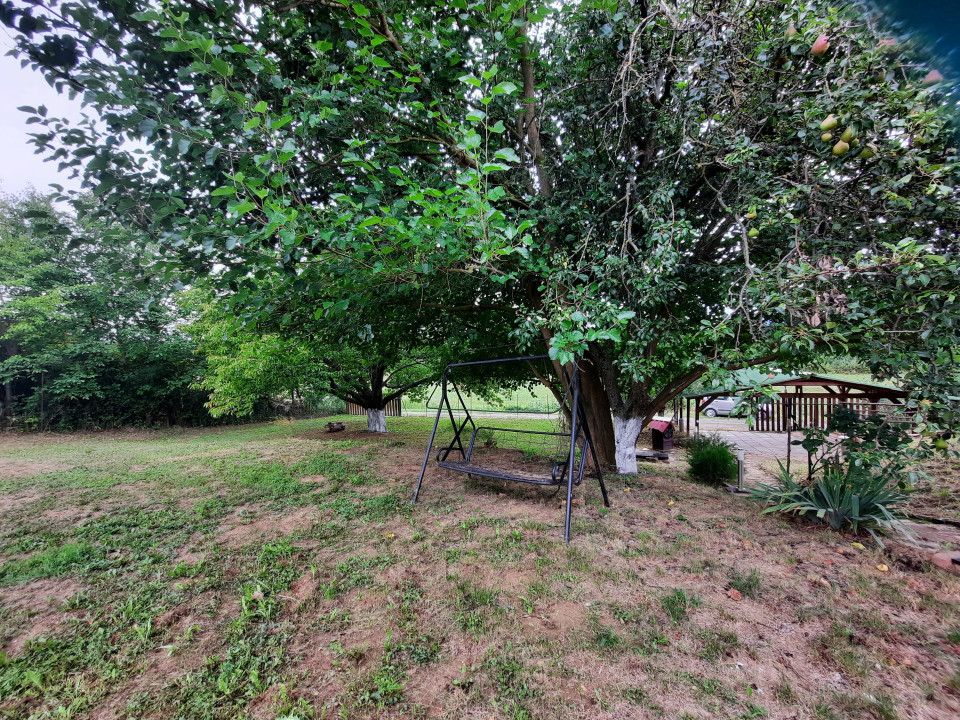 A telken termő gyümölcsfák (cseresznye, alma, körte) vannak, a kert végében erdősáv van kialakítva.
