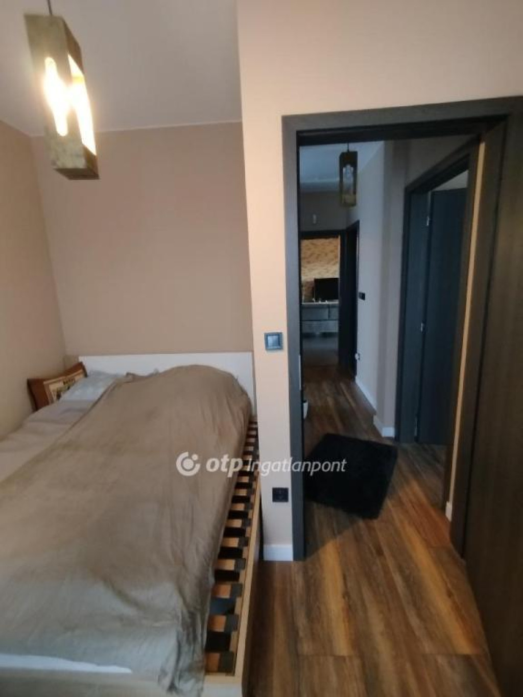 Ez a gondosan tervezet és modern stílusban kivitelezett otthon 1220 nm-en telken, nyugodt csendes környezetben. Könnyűszerkezetes nagy belmagassággal a nappali teteje szalufáig burkolva van. Melléképülete külön álló, 30 nm-es klímával, melyben jelenleg konditerem van. Nagy ablakok és tágas világos terek jellemzik.