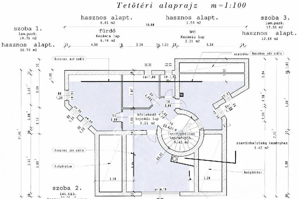 Főbb paraméterek: Hasznos alapterület: 363 nm Alsó szint: wellness részleg, garázs, tárolók (162,6 nm) Középső szint: nappali, étkező, konyha, 2 szoba (119,9 nm) Felső szint: hálószobák, fürdőszoba (81 nm) Telek mérete: 1072nm, automata öntözőrendszerrel. Wellnessrészleg: 60.000 literes, fűthető, 10 méteres medence, Finn szauna, infraszauna és sókamra egyben.