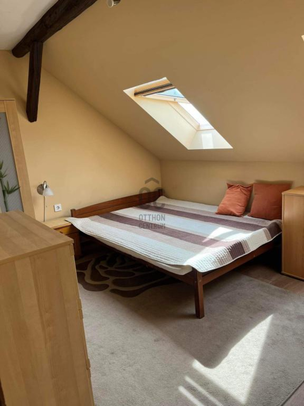 A tetőtérben szintén egy tágas nappali-konyha-étkező, 2 szoba, külön fürdő és wc került kialakításra.