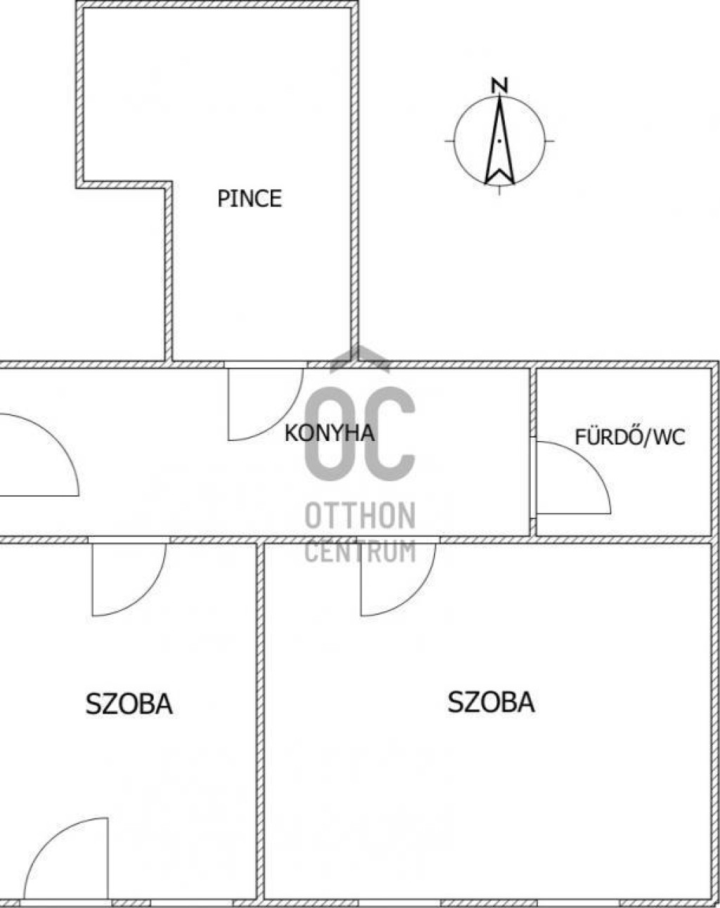 A földszinten található 2 szoba, konyha, fürdő/wc egyben, illetve a pincébe lejutás is innen lehetséges.