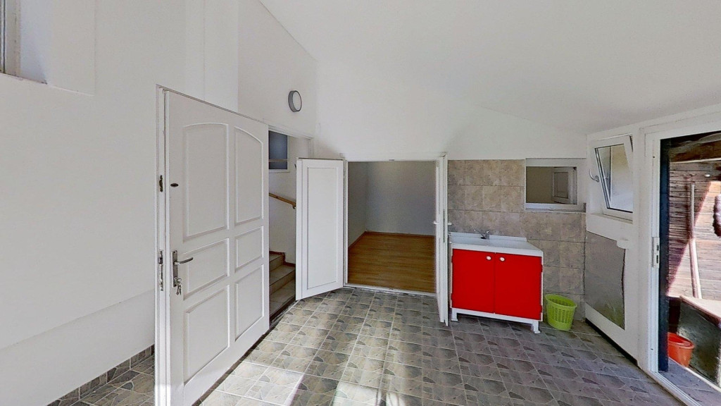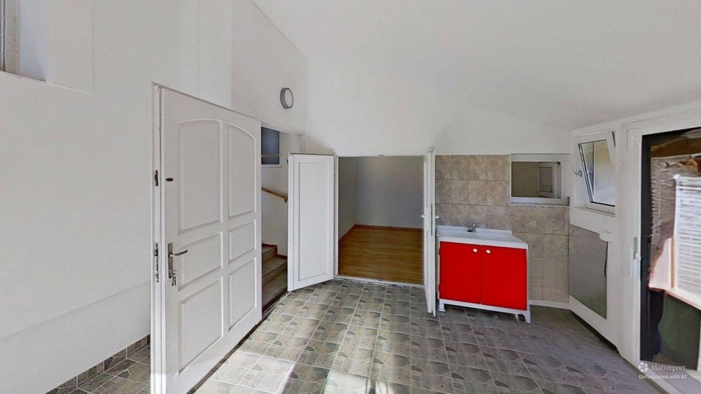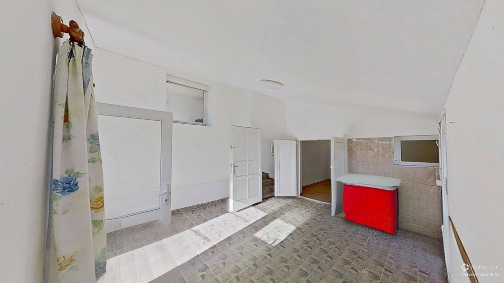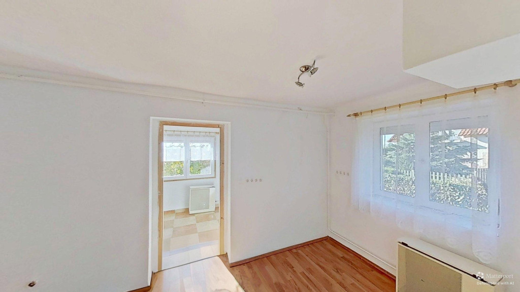 A ház jelenlegi beosztása változtatható, a leendő tulajdonos teljesen újragondolhatja a szobák funkcióit, a konyha és a fürdőszoba helyét.