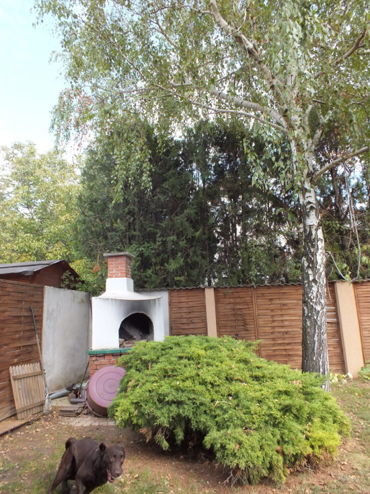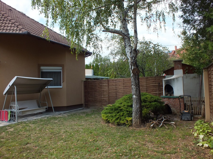 A kert éppen ideális méretű 400 m2- es, belső terasszal kiegészítve, kényelmes helyszín a családi kikapcsolódáshoz. Az udvar rendezett, részben térkő, nagyrészt füvesített, növényekkel ízlésesen beültetett, kertizuhanyzó valamint építetett kemence található.