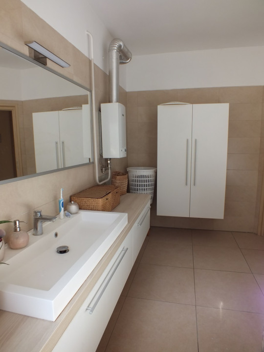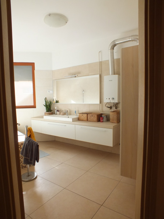 A ház fűtését gázkazán biztosítja a szobákban lapradiátoros hőleadással a nappali-konyha- folyosó részen pedig padlófűtés- hűtő fűtő klímával kiegészítve.