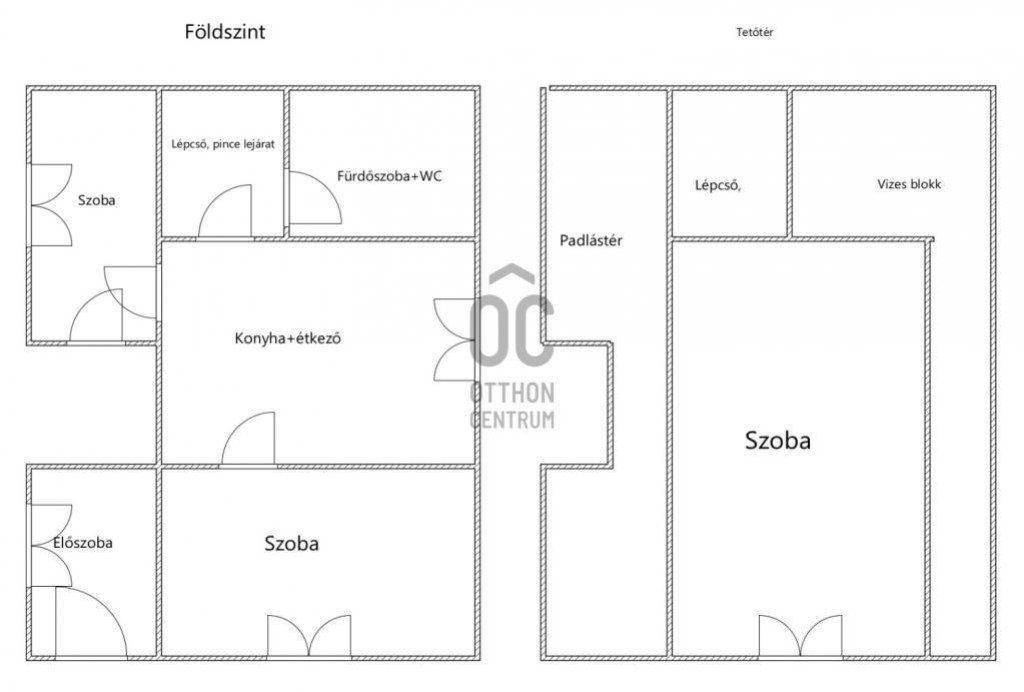 A tetőtérben egy tágas szoba van, víz fel van vezetve, akár egy fürdőszoba is kialakítható.