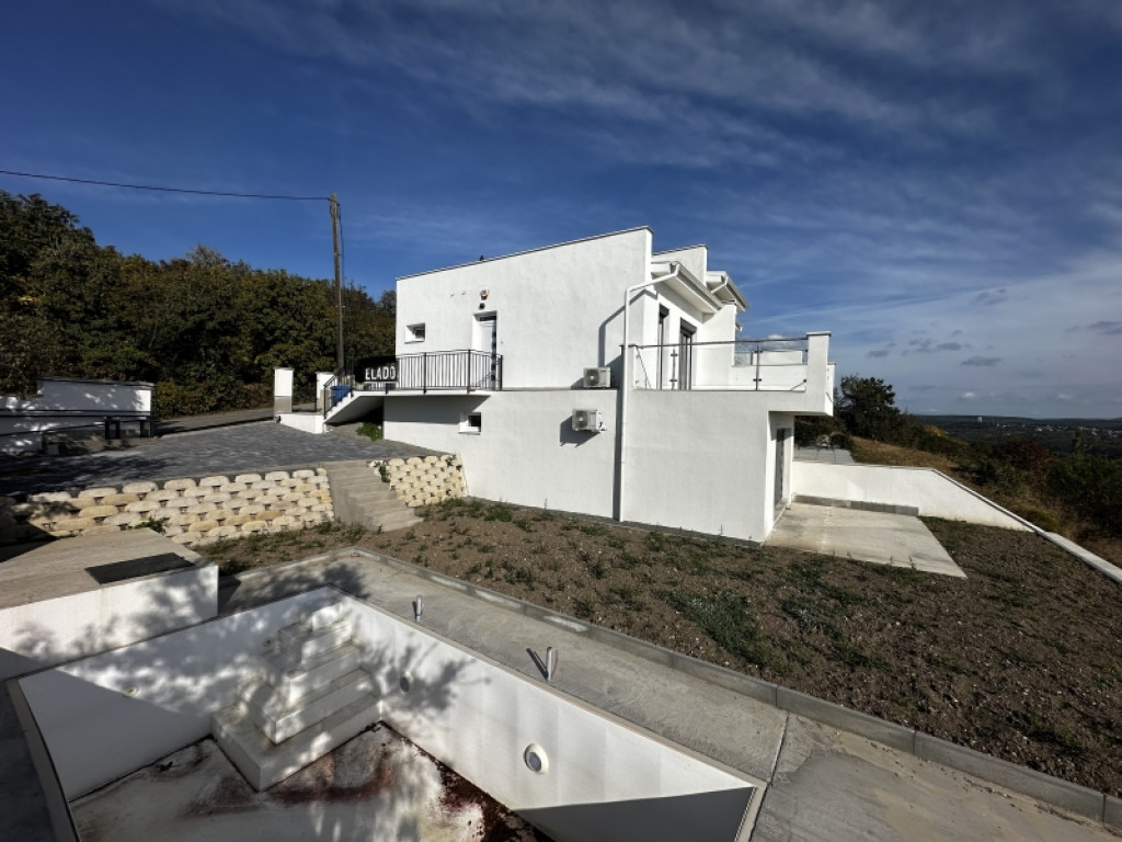 Exkluzív kiegészítők: medence, kültéri panoráma szauna, fedett udvari beállók, klíma, vízlágyító és riasztó.