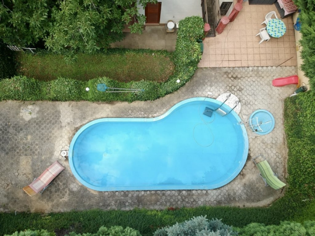 Az ingatlanhoz tartozik egy medence, amely tökéletes kikapcsolódást nyújt a nyári hónapokban.