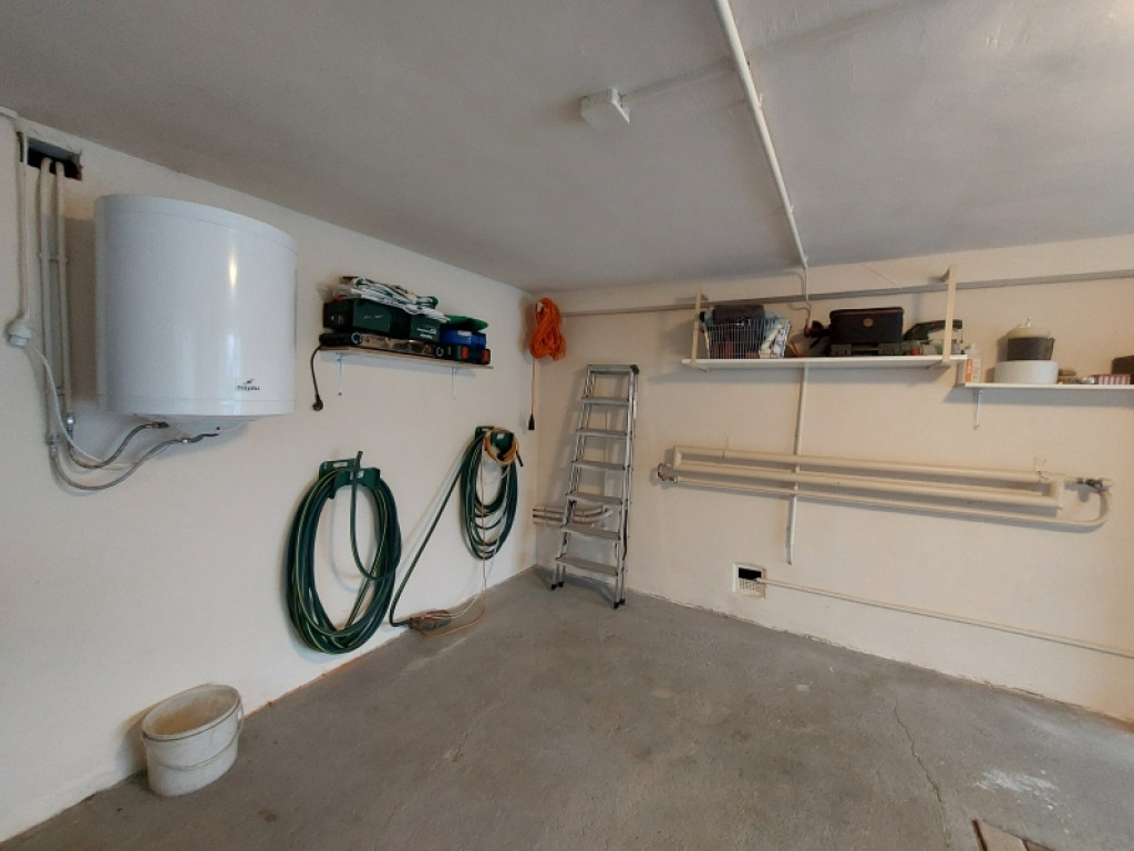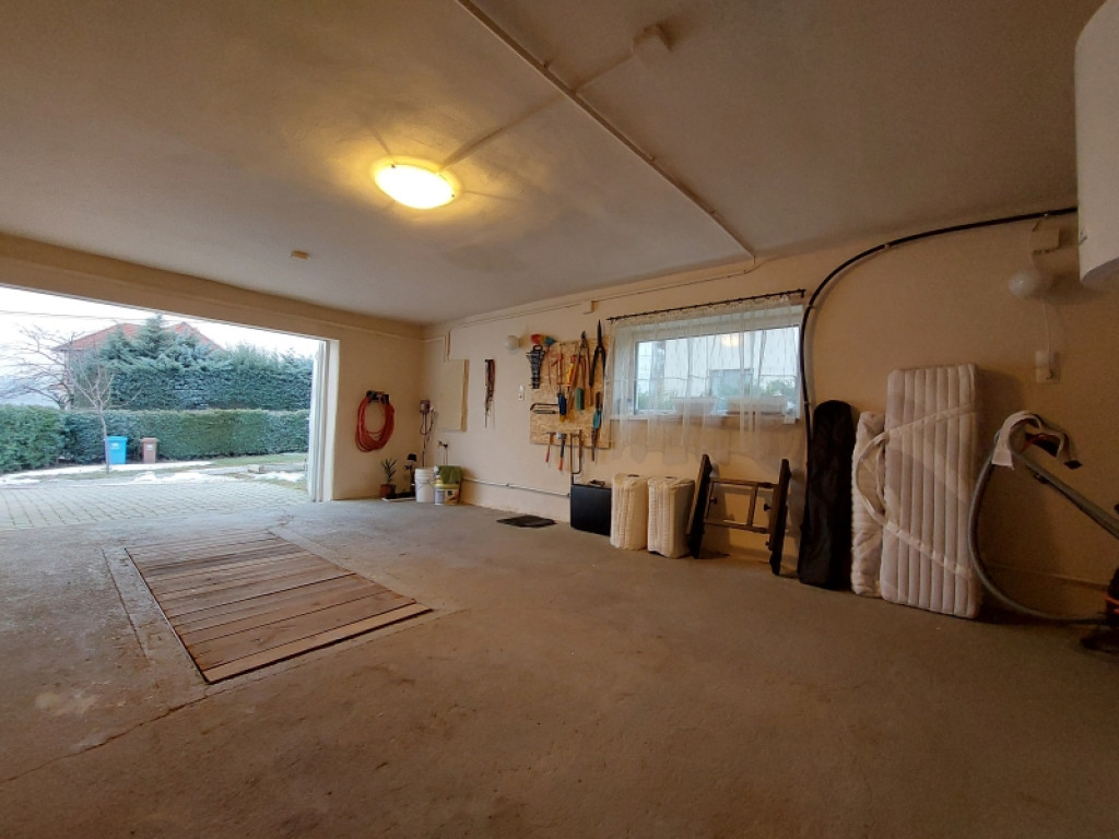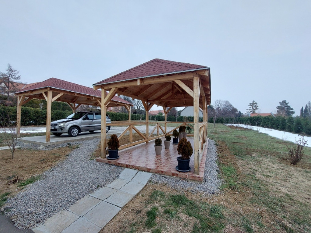 A kert valódi mediterrán oázis, gondosan karbantartott növényzettel, termő gyümölcsfákkal és a telek teljes kerületén végig futó tujasorral, amely nemcsak árnyékot ad, hanem maximális privát szférát is biztosít. Az udvaron helyet kapott egy 18 m²-es, fedett, minőségi járólappal burkolt filagória, egy 18 m²-es, beton alapú fedett autóbeálló, valamint egy 26 m²-es, zárt, szerelőaknás, fűthető garázs, amely műhelynek, hobbitérnek vagy egész éves használatra is kiválóan alkalmas. A szabadtéri életet egy modern kerti kemence teszi teljessé. A gazdaságos és fenntartható működést két ciszterna, valamint egy fúrt kút biztosítja, amely a vezetékes víz mellett kiépített hidrofor rendszernek köszönhetően – egy tartály beépítésével – nemcsak öntözésre, hanem akár a ház teljes vízellátására is alkalmassá tehető.