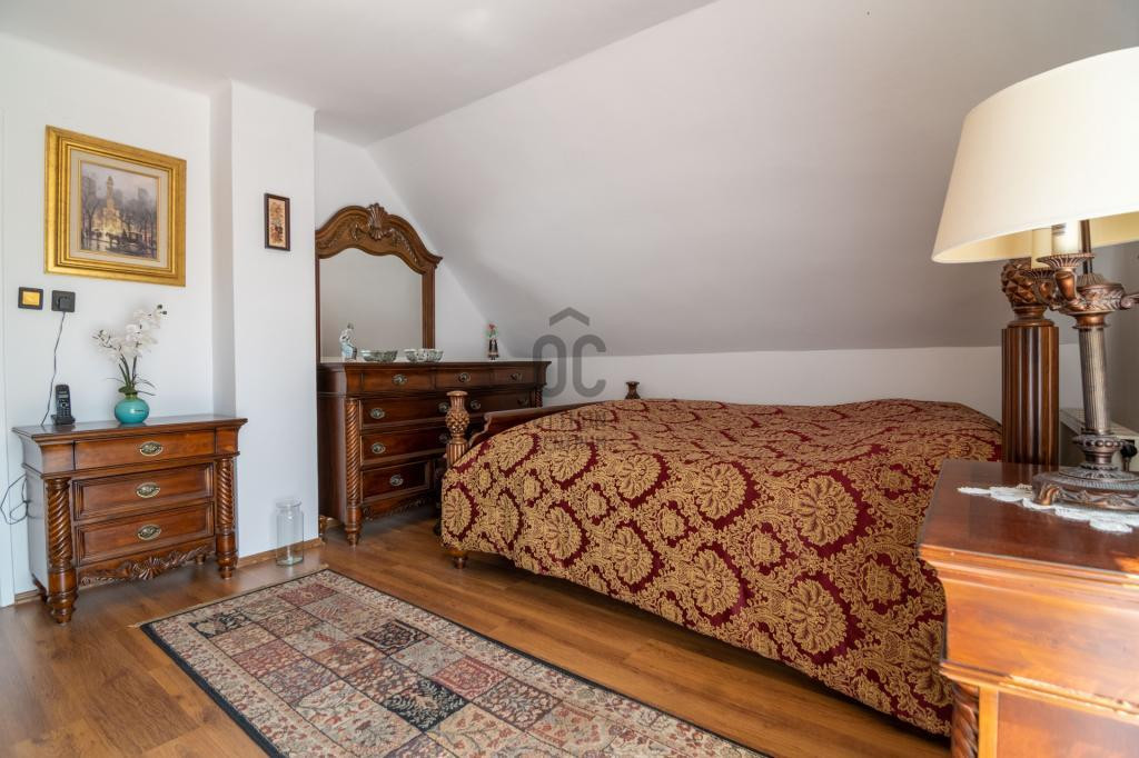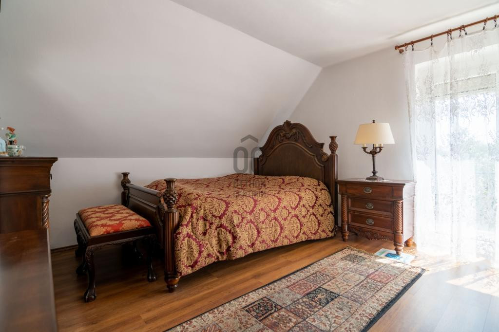 A tetőtér beépítésével négy hálószobát, fürdőt, WC-t, egy tágas hallt alakítottak ki.