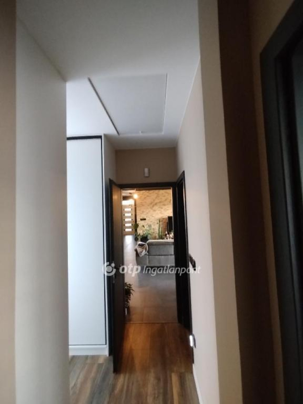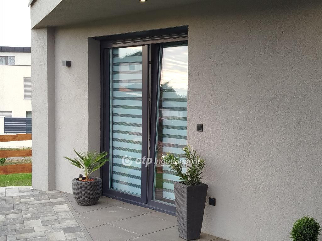 Ez a gondosan tervezet és modern stílusban kivitelezett otthon 1220 nm-en telken, nyugodt csendes környezetben. Könnyűszerkezetes nagy belmagassággal a nappali teteje szalufáig burkolva van. Melléképülete külön álló, 30 nm-es klímával, melyben jelenleg konditerem van. Nagy ablakok és tágas világos terek jellemzik.