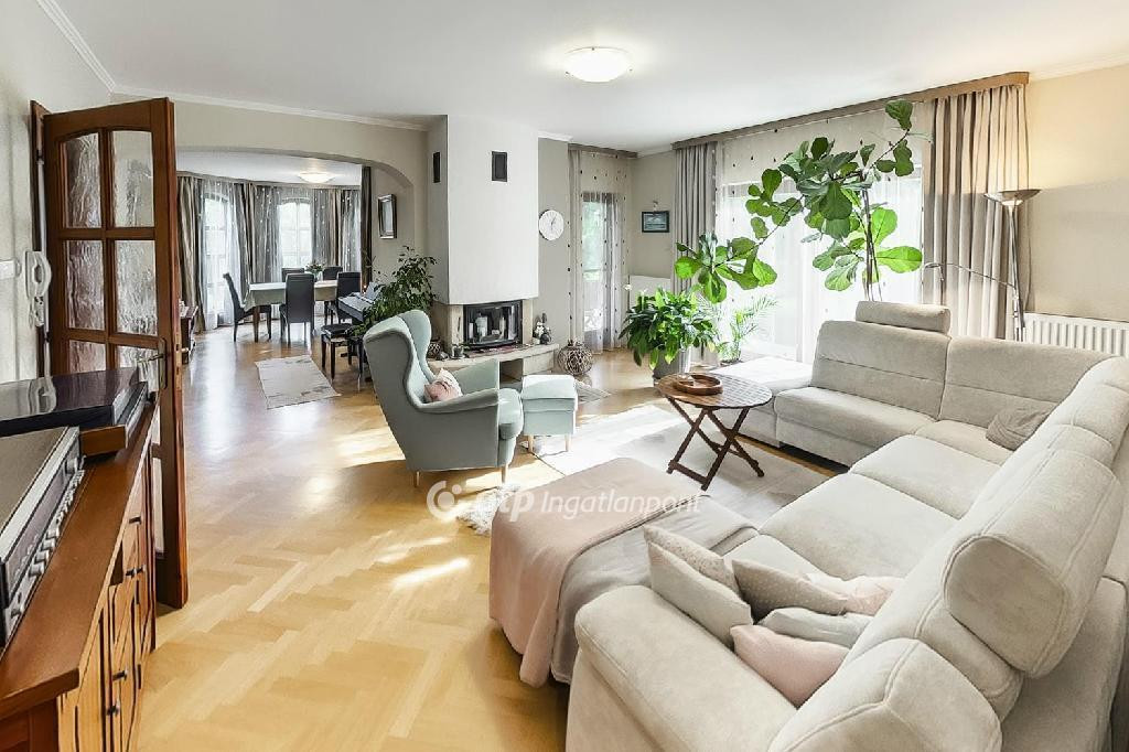 - Elegáns földszint, kandallós nappalival és mediterrán hangulatú terasszal. A nappali és az étkező közvetlenül egy fedett teraszra nyílik, ahol a virágokkal, halastóval és madárcsicsergéssel teli kertben pihenhet.