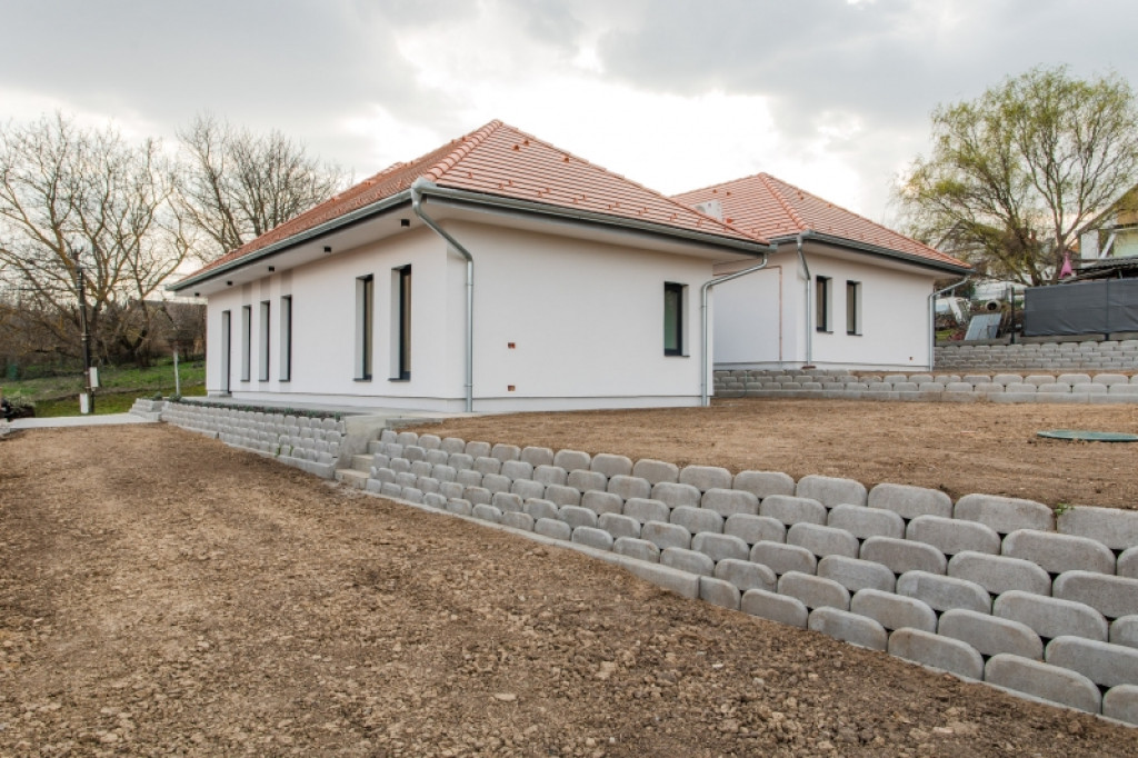 Újépítésű ikerház nagy kerttel, jól használható terekkel és modern műszaki tartalommal.