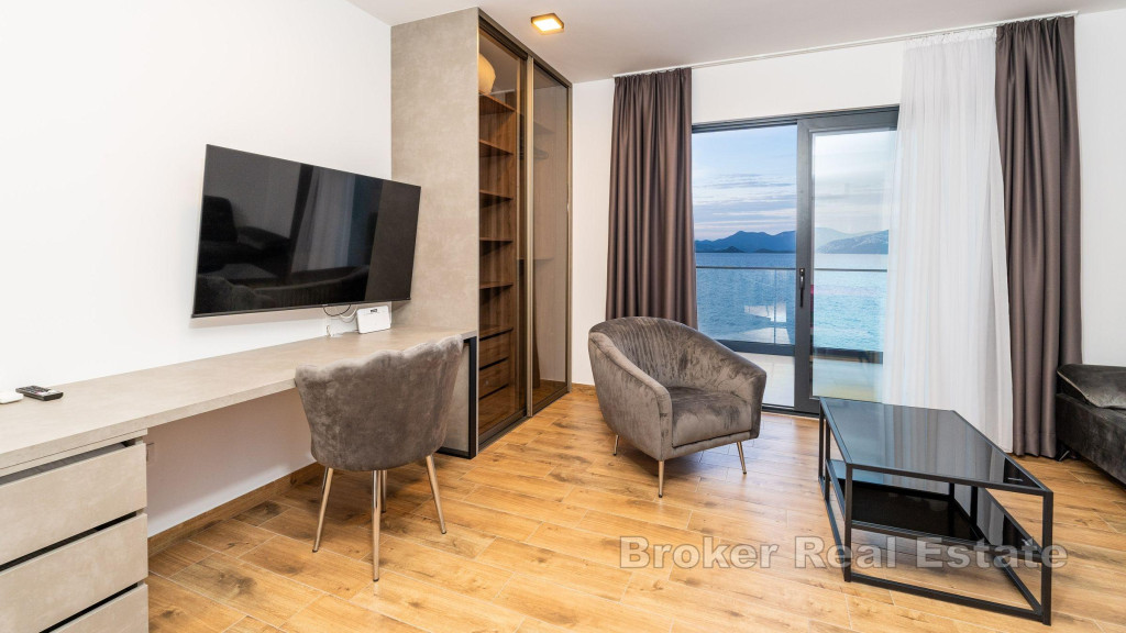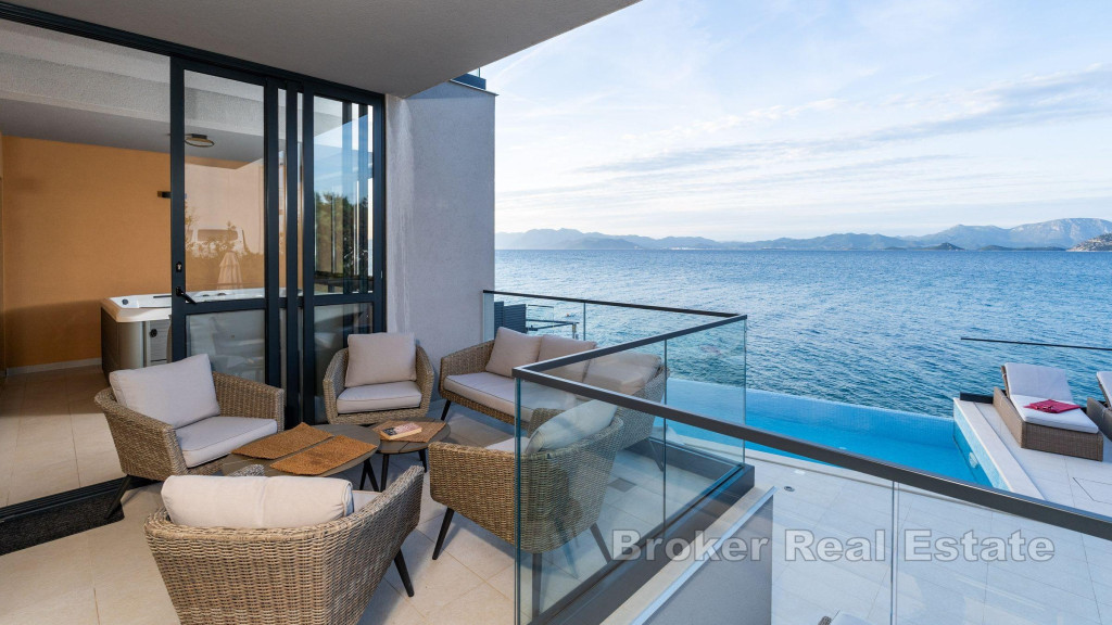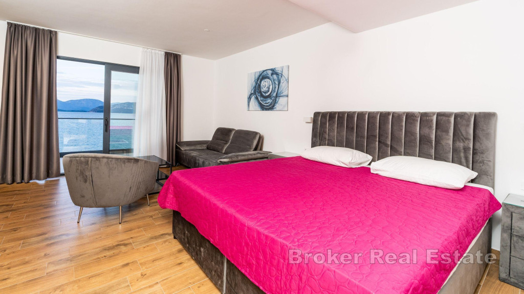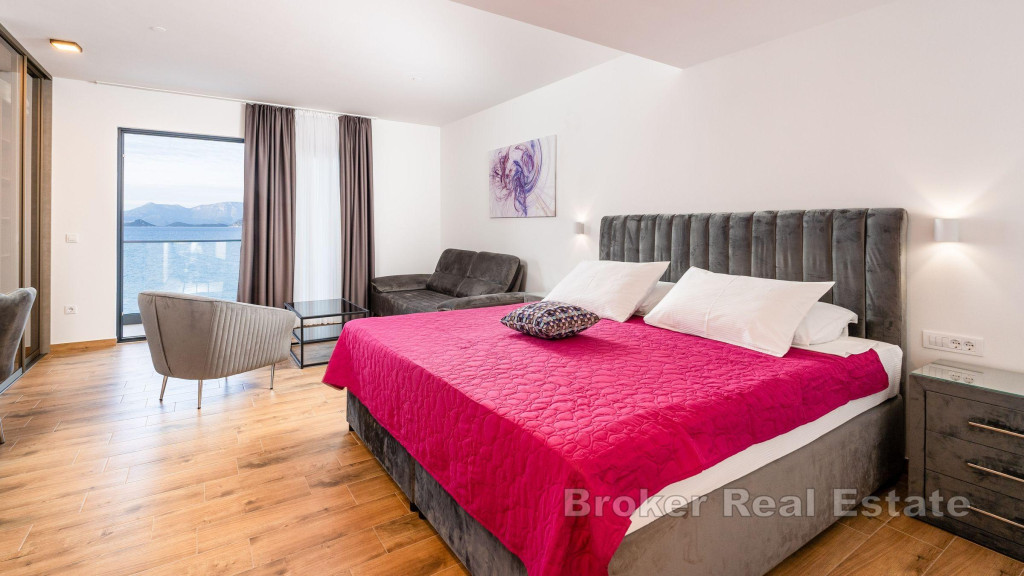 House with pool in the first row to the sea on Pelješac. The property with a total living area of 440, 79 m2 covers a basement, ground floor and two floors. On the basement floor there is a fitness room and a room with entertainment content (table tennis, billiards). The ground floor consists of an entrance area, open concept kitchen with dining room and living room, toilet, sauna and jacuzzi. On the first floor there are two bedrooms with their own bathrooms and a space for hanging out, on the second floor there are three double bedrooms with attached bathrooms and access to the terrace with a stunning open view of the sea. The outdoor part is enriched with a swimming pool with a sunbathing area. Walking distance from the pebble beach and 200 m from the town center. An attractive offer is the possibility of continuing the already well-established tourist business. BROKER REFERENCE ID:5259/30