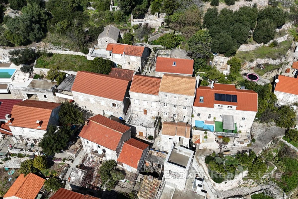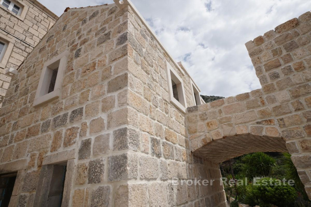 Located in the very center of the traditional fishing and wine-growing village of Podobuče, on the southern coast of the Pelješac Peninsula, stands the largest and most impressive original stone house in the settlement. This unique property is positioned precisely between two of Croatia’s most renowned wine regions, Postup and Dingač, offering a perfect blend of historical ambiance and exclusive investment potential. It is situated 10 kilometers from the municipal center of Orebić and connected to the main road by a 6-kilometer asphalted access road, making it a perfectly secluded yet accessible oasis. Dubrovnik International Airport is approximately 110 kilometers away. The property has been envisioned as a high-end boutique hotel that combines premium accommodation with a rich enological offering. Its impressive vertical layout includes a 45 m² basement designed as a representative wine cellar and social space, a 22 m² lower ground floor, a spacious 105 m² ground floor, and upper levels consisting of a 70 m² first floor and second and third floors of 50 m² each. A special exterior highlight is the expansive sun terrace with a swimming pool located directly in front of the house. Together with a historic fortification converted into an open living area, it offers spectacular views of the sea, cascading vineyards, and the old village core. Renovation is in full progress, with structural works completed and the construction carefully restored using original stone to preserve the authentic character of the property. The interior design offers complete flexibility to the future owner, as the project is currently in the phase of installing utilities and finishing ceramics. High-quality materials have already been secured, including 350 m² of floor tiles, decorative mosaics, bathroom equipment, air-conditioning systems, and complete pool equipment, significantly accelerating the path to completion and opening. The house is situated on a slope connecting the coastal part of the village with the elevated area, forming a unique aesthetic ensemble together with surrounding dry-stone walls and a nearby pebble beach, just 100 meters away via a charming old stone pathway. A significant advantage of this property is a private parking area for up to 5 vehicles, located at the entrance to the old village. The parking is secured with an automatic barrier, representing a key infrastructural benefit for accommodating guests and visitors to the wine gallery. The property is fully equipped with electricity and water connections, as well as its own large-capacity dual-chamber septic system. This stone beauty represents a rare opportunity to take over a project that, with its scale, heritage, and luxury features such as a swimming pool and wine cellar, stands out in one of the most beautiful settlements on the Adriatic coast. BROKER REFERENCE ID:2052/122