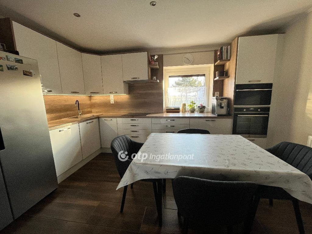 Az OTP Ingatlanpont eladásra kínálja Győr-Moson-Sopron megyei Péren 1810 nm-es telken, csendes, átmenő forgalomtól mentes utcájában található 86 nm-es teljes körűen, igényesen felújított családi házat. Pér dinamikusan fejlődő település, új épülő lakóparkokkal, néhány kilóméterre az M1 autópályától, közeli repülőtér, bölcsőde, óvoda, iskola, boltok szolgáltatóházak megtalálhatók. A tégla falazatú ház az elmúlt években teljes felújításon, belső átalakításon esett át. Tetőcsere, födémszigetelés, külső grafitos homlokzati szigetelés, teljes víz és villanyhálózati felújítás, 28 napelem, hőszivattyú, elektromos autók töltésének lehetősége. Fedett teraszról jutunk be a nagyméretű amerikai konyhás nappaliba, közlekedőkön keresztül nyílik a három hálószoba, győnyörően kialaított fürdő és külön mosdó,mosókonyha is. A ház hátsó részében található gépészeti helyiség. A hálók fűtése egyedi szabályozású radiátoros, a többi helyiség padlófűtéssel és radiátottal megoldott. A nyílászárók háromrétegű szigetelt, motoros redőnnyel, szúnyoghálóval felszerelt ablakok. A burkolatok új, igényes járólap és laminált padló. A teraszon jakuzzi, az udvaron játszótér, gyümölcsfák, tárolók, udvari pince, fúrt kút szolgálják a lakók kényelmét. Amennyiben felkeltettem érdeklődését, HÍVJON!! Megtalálta keresett ingatlanát, de nem áll a rendelkezésére a vételár teljes összege? Mi ebben is segítünk Önnek. Keressen: ingatlanközvetítés és hitelmegoldások egy helyen, az OTP Bank szakmai hátterével! Ingyenes előszűrés, értékbecslés! Gyorsított ügyintézéssel, akár banki nyitva tartáson túl is.