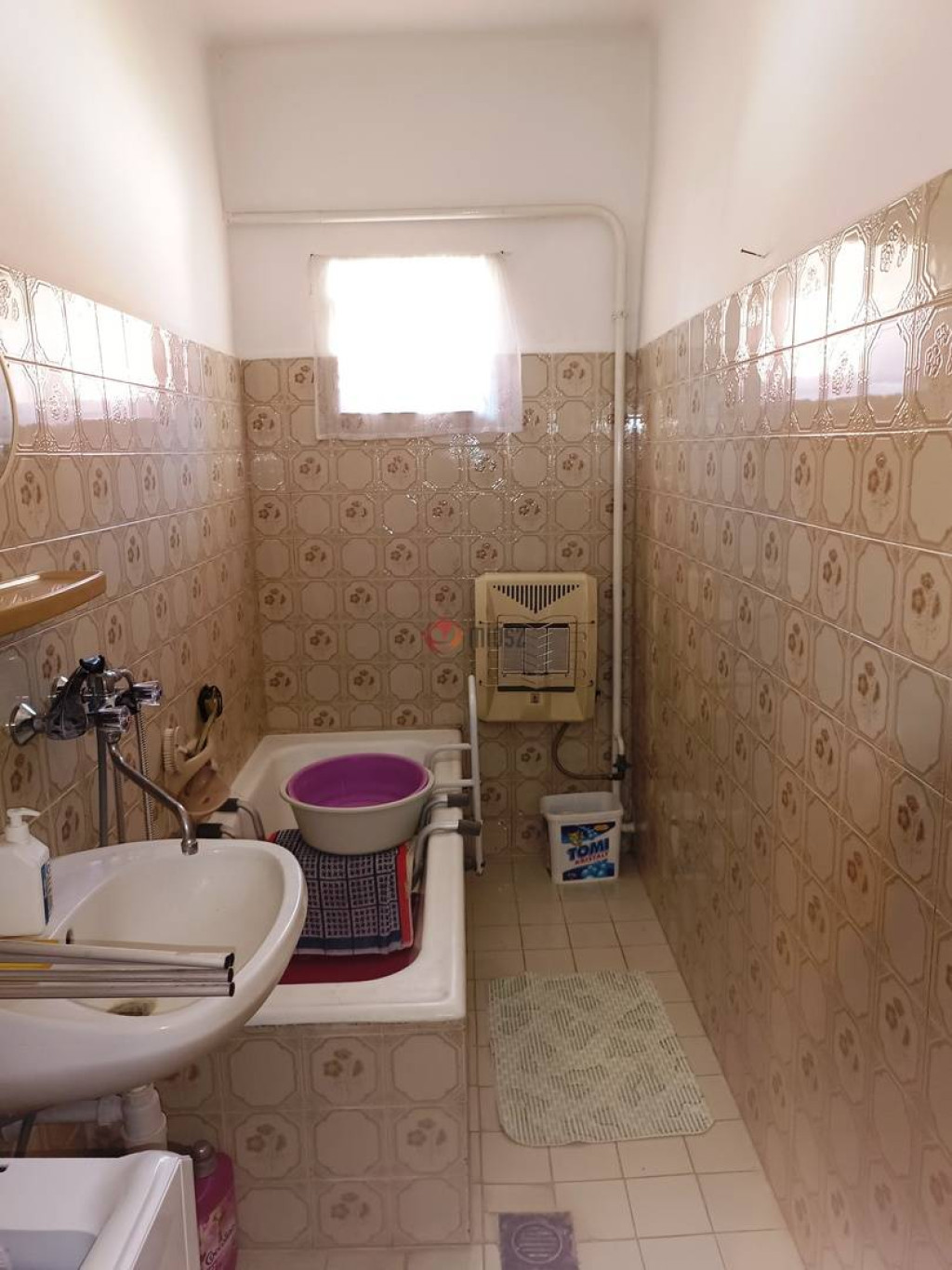 A házban üvegezett előszoba (10 m2), étkezős konyha (13 m2), kádas fürdőszoba (5.51 m2), WC, kamra található, meleg vizet gázbojler biztosítja.