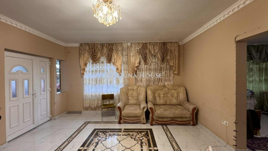 A főépület 85 m²-es, amely a térképszelvényen is feltüntetésre került és minden közmű rendelkezésre áll. Elrendezése praktikus: