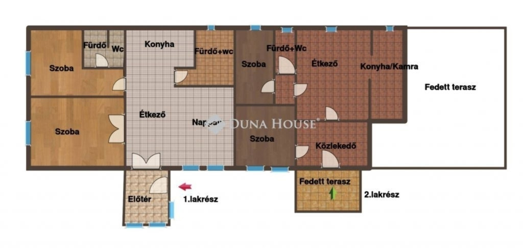 -kialakítása: 2 szoba, előszoba, konyha+étkező, kamra, fürdő+wc, gardrób.