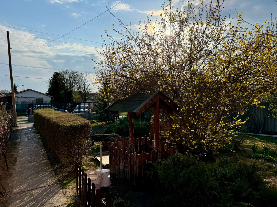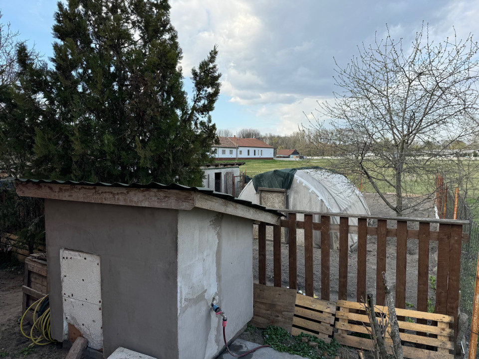 A gáz az udvaron elérhető. Beosztás: 2 szoba, nappali-előtérrel, konyha étkezővel, fürdőszoba-WC-vel, közlekedő.