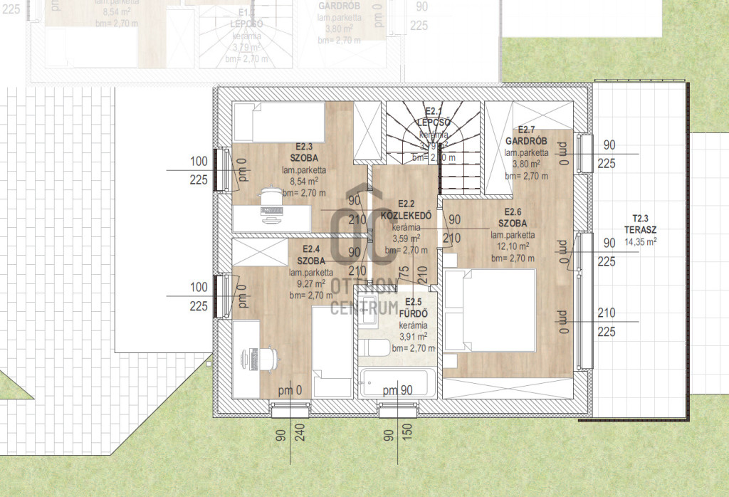 - 14 és 15 négyzetméteres terasz és erkély
