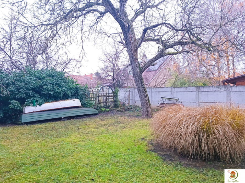 A ház külső méretei: 10m x 9,5m, a nettó lakótér 80m². A kertben örökzöldek, árnyékot biztosító szép nagy diófa, ásott kút, füves terület és több gépkocsi számára beálló hely.