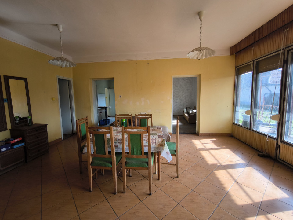1980-ban szilikátból épült beton alapra, 92 nm a hasznos alapterülete. Helyiségei: 3 szoba, nappali, fürdőszoba, külön wc, konyha, kamra, előszoba. Betonozottak a szobák, burkolat nélküliek. Víz, villany, csatorna van.