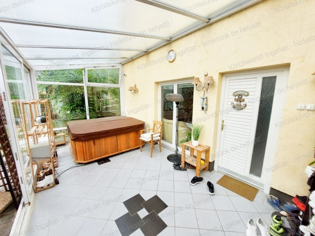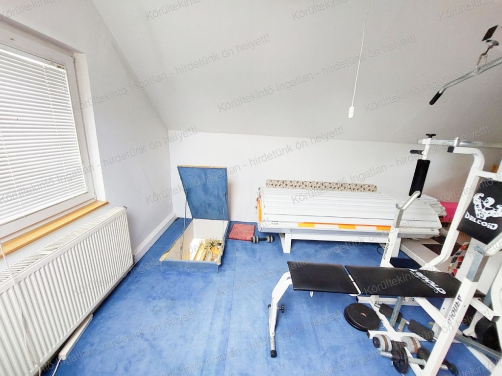 A telek két helyrajzi számon szerepel, ebből az egyiken (546 nm) salakos teniszpálya, a másikon (559 nm) a három szintes családi ház dupla garázzsal, kerti medencével, télikerttel, benne jacuzzival. A kert automata öntözőrendszerrel ellátott.