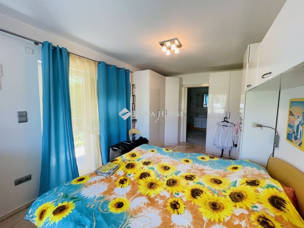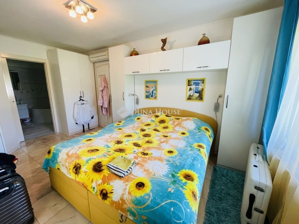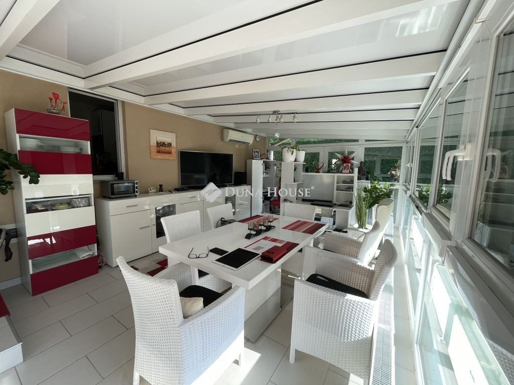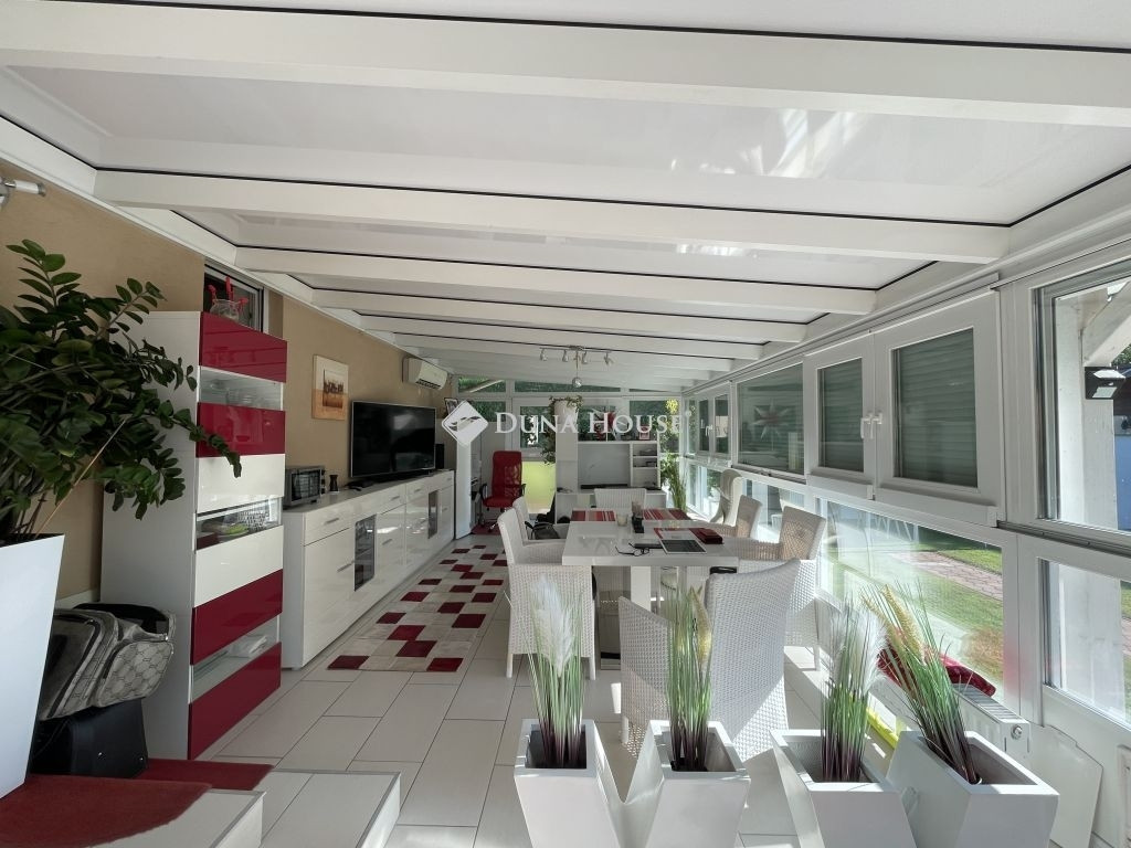 A 2007-ben épült ház praktikus elrendezésű: előszoba, nappali, konyha, két külön nyíló hálószoba (mindkettő saját, WC-vel ellátott fürdőszobával), valamint egy 32 nm-es, beépített és szigetelt télikert tartozik hozzá.
