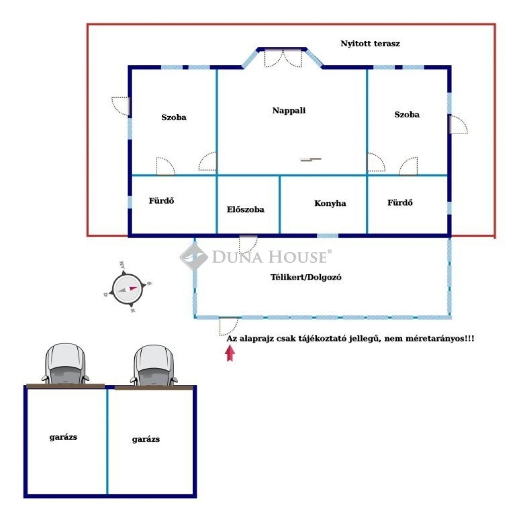 - különálló, kétállásos garázs