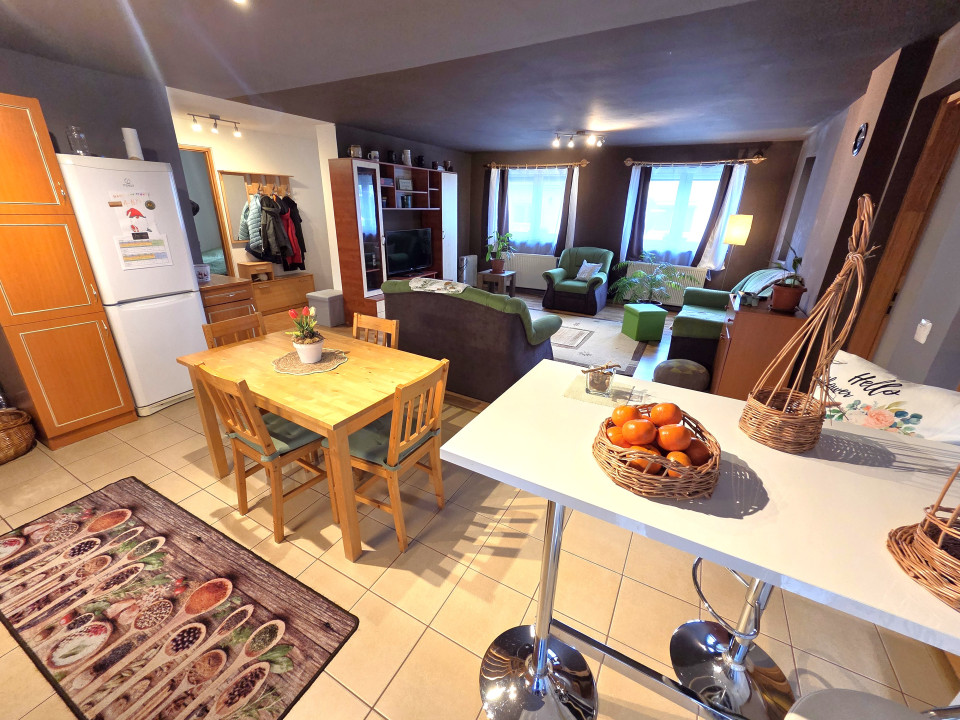 A lakásba belépve, már az előtérből megakad a tekintet a tágas, amerikai konyhás nappalin. A tér világos, hívogató, és azonnal érezni benne azt az otthonos hangulatot, ahol jó megérkezni egy hosszú nap után. A nappali közvetlen kertkapcsolattal rendelkezik, így a természet szinte észrevétlenül válik a mindennapok részévé.