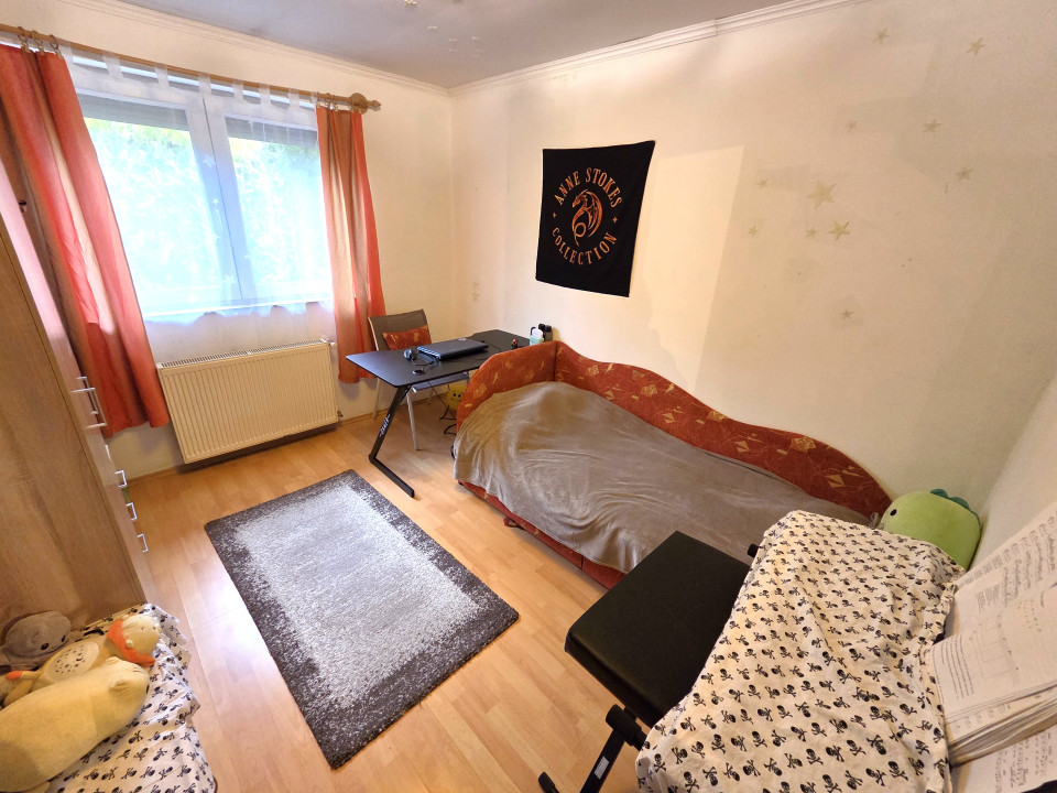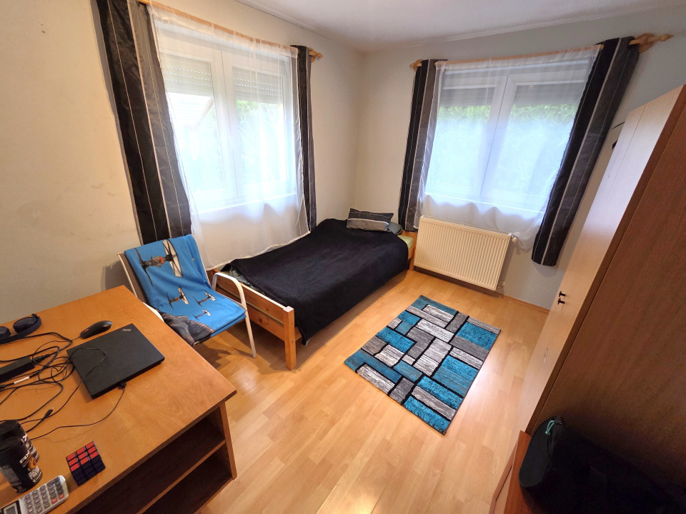 Az előtérből nyílik a szülői hálószoba, amely nyugodt elvonulást biztosít, valamint a tágas fürdőszoba és a különálló WC, így a lakás elrendezése a mindennapi kényelmet szolgálja. A nappaliból közvetlenül közelíthető meg a további két hálószoba, amelyek ideálisak gyerekszobának, dolgozószobának vagy vendégszobának is.