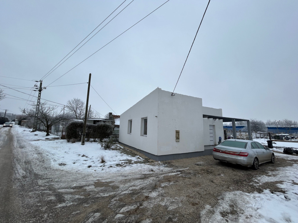 Polgárdiban eladó egy 1200 m²-es dupla telken fekvő, 72 m² hasznos alapterületű, családi ház. Az ingatlan 2021-ben épült téglából, 10 cm-es homlokzati szigeteléssel, lapostetős kialakítással és lemezfedéssel. Belső elrendezése praktikus és jól kihasználható: amerikai konyhás nappali étkezővel, három külön nyíló szoba, valamint egy zuhanyzós fürdőszoba WC-vel biztosítja a kényelmes mindennapokat.